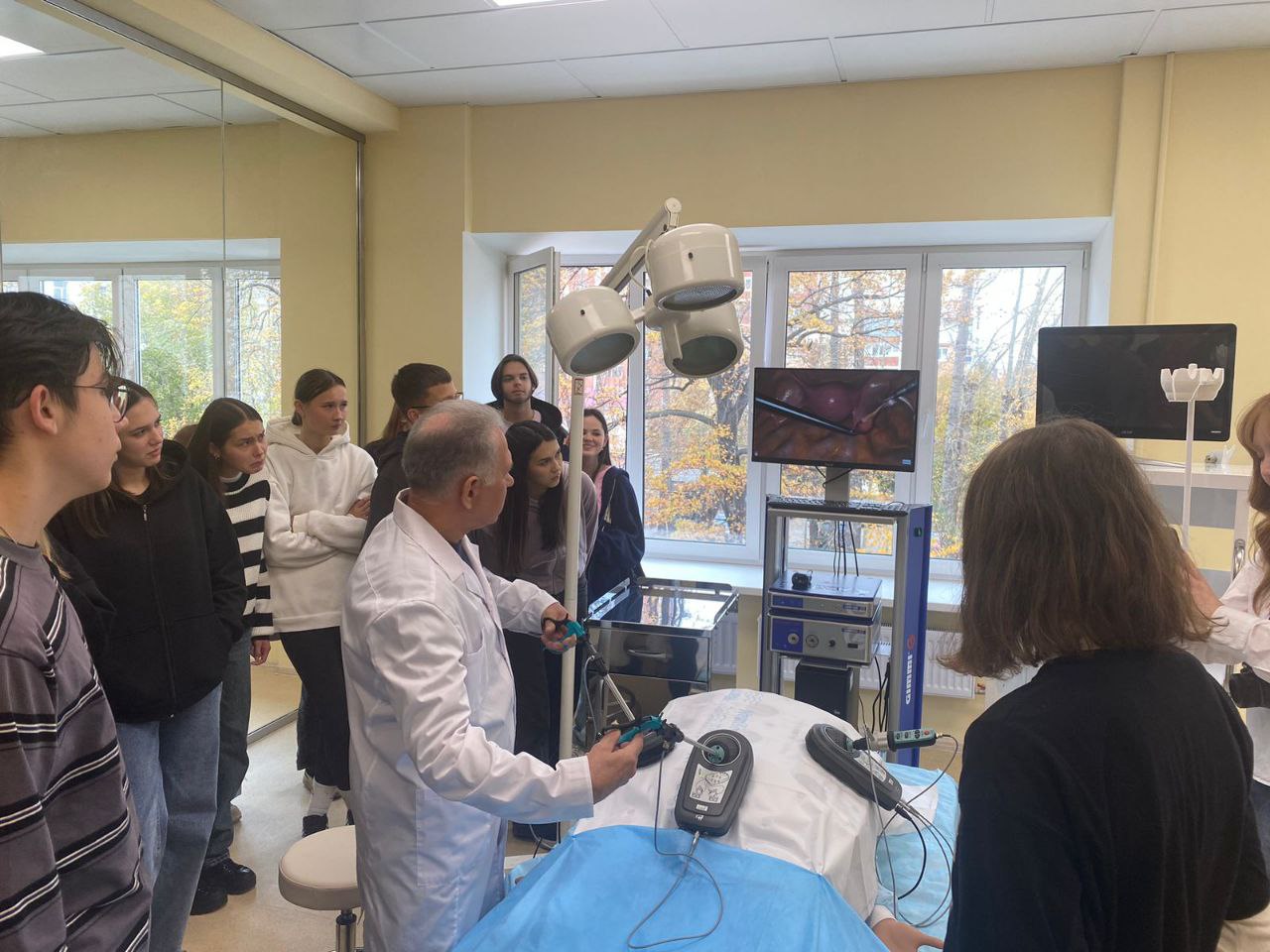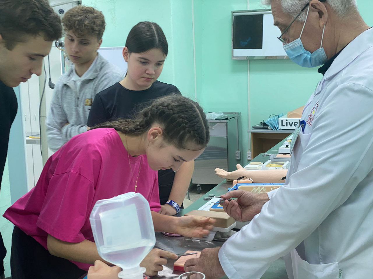 В университете школьники ознакомились со стимуляционной детской больницей и хирургической клиникой, увидели операционную и родильный зал. У каждого ученика была возможность проделать ту или иную медицинскую манипуляцию. Когда участники проекта попробовали себя в роли врача, у многих из них рассеялись сомнения насчет правильности выбора профессии.