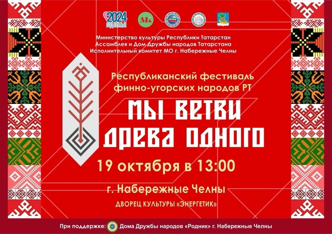 19 октября во Дворце культуры «Энергетик»  состоится Республиканский фестиваль финно-угорских народов Республики Татарстан «Мы ветви древа одного». Фестиваль проводится в целях сохранения и развития традиционной культуры финно-угорских народов, выявления самобытных фольклорных коллективов и исполнителей, приобщения молодежи к национальной культуре и уважения к культурам народов Республики Татарстан.