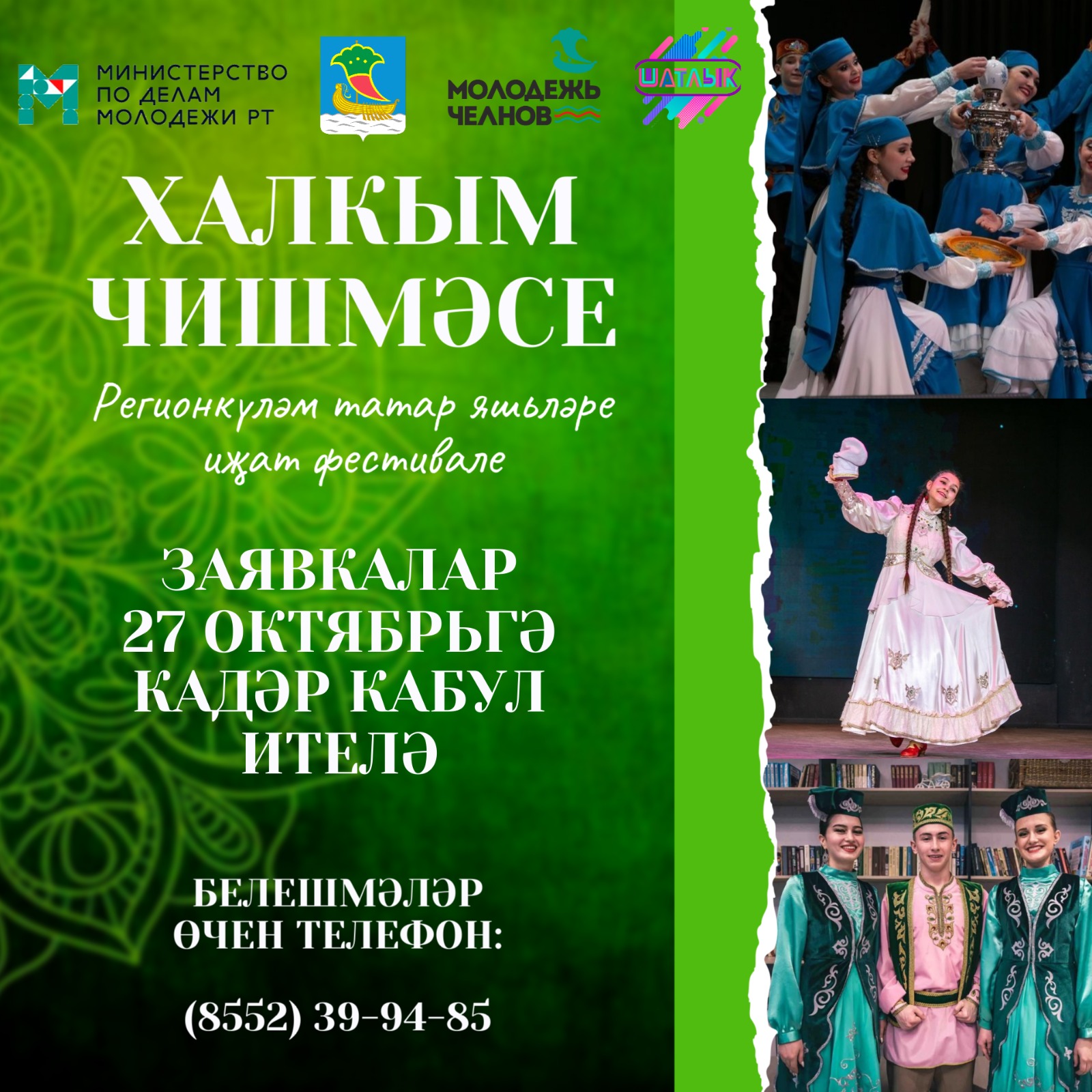 В Набережных Челнах стартовал прием заявок регионального молодёжного фестиваля татарского национального творчества «Халкым чишмәсе». Для участия в конкурсе приглашается молодежь – от 14 до 35 лет.