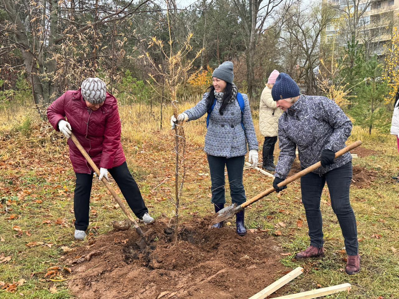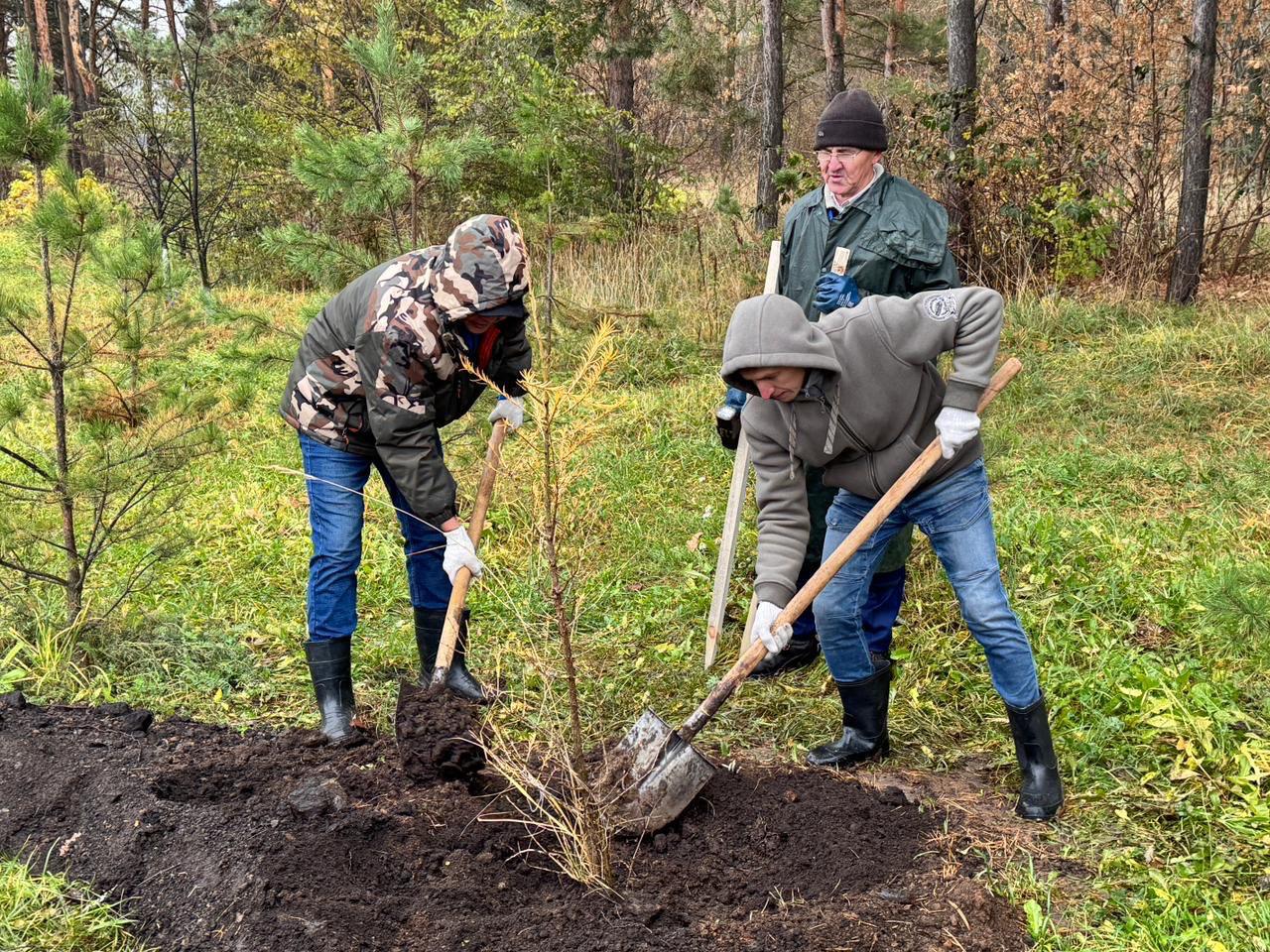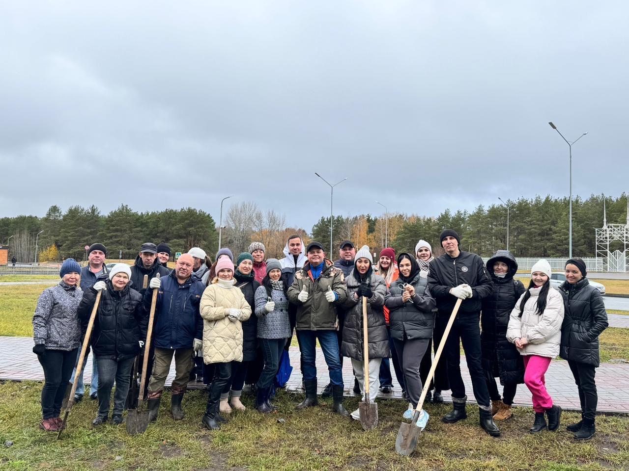 Сотрудники администрации Комсомольского района, ТОС, волонтеры, сотрудники предприятий города посадили 150 деревьев возле Орловской церкви.