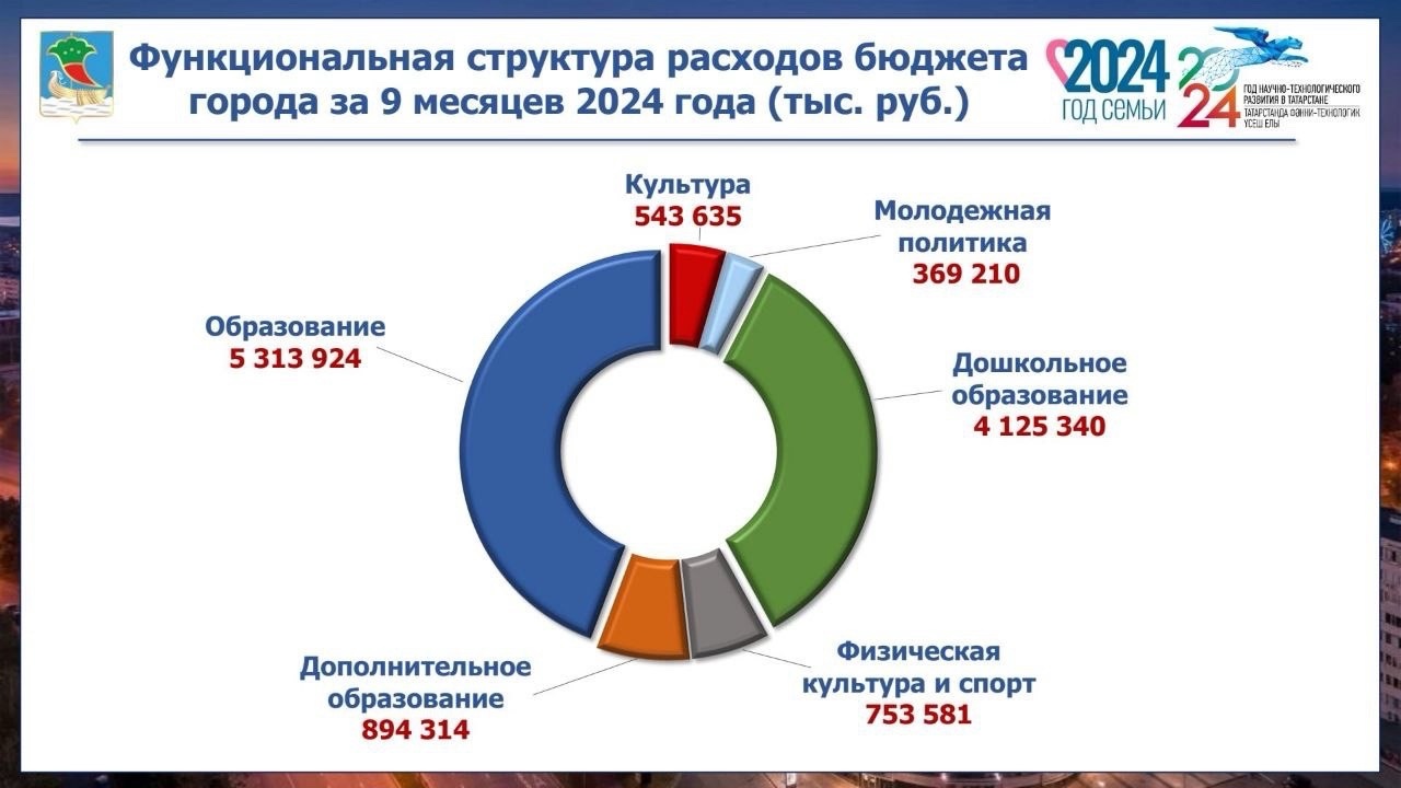 На дошкольное образование направлено – 4 млрд 125 млн руб.; на общее образование – 5 млрд 314 млн руб., дополнительное образование детей – 894 млн руб., молодежную политику – 369 млн руб.; культуру – 544 млн руб., здравоохранение – 7 млн руб., социальную политику – 287 млн. руб., физическую культуру и спорт – 754 млн руб.