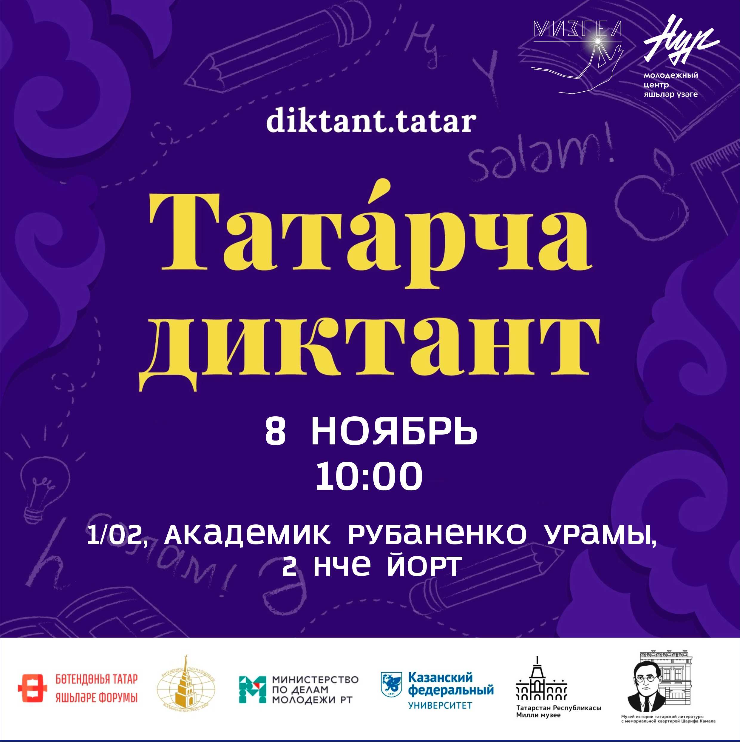 8 ноября в 10:00 пройдет образовательная акция по проверке грамотности на татарском языке «Татарча диктант». В автограде написать диктант на татарском языке можно будет в молодежном центре «Нур».