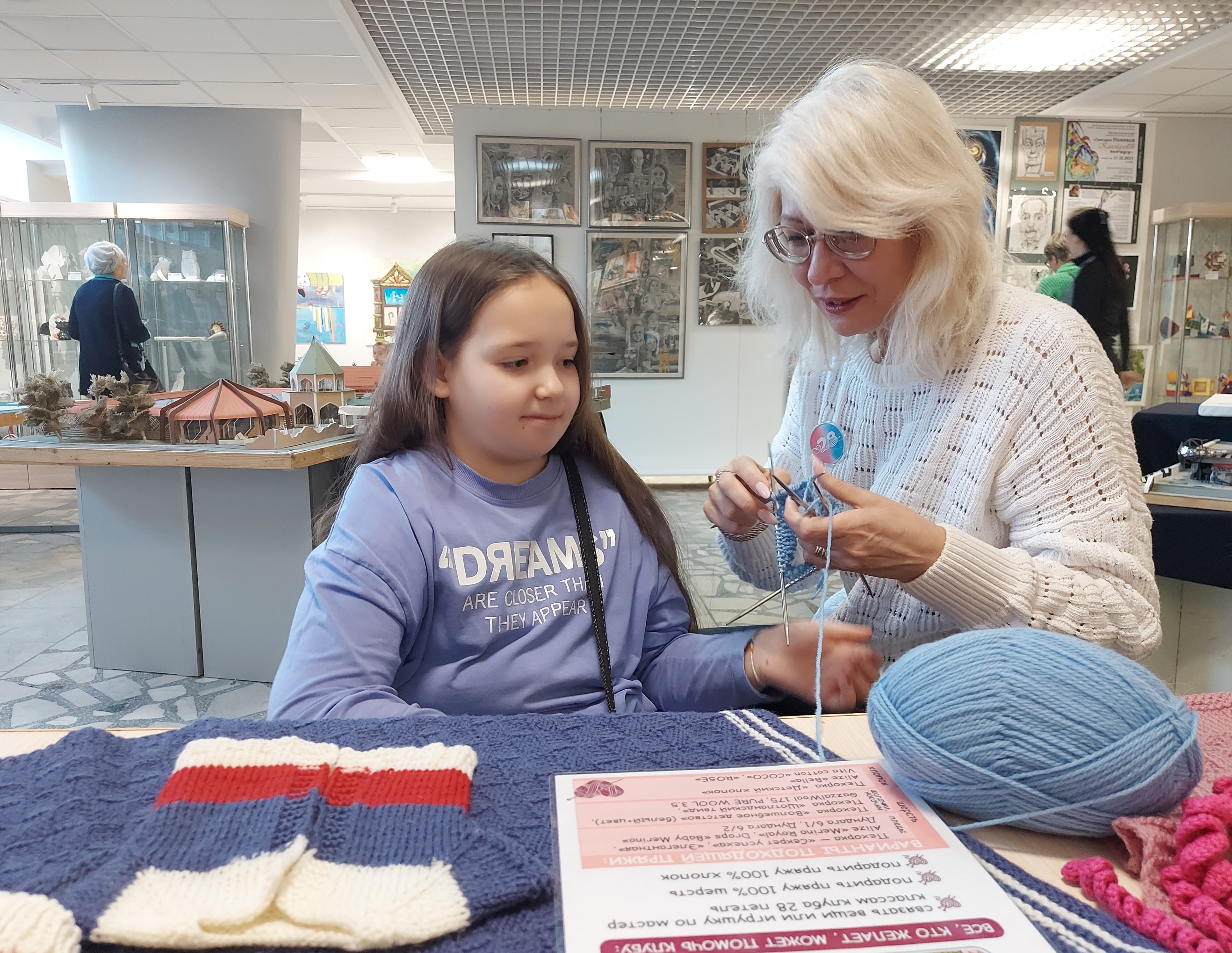 На благотворительном мастер-классе по вязанию от клуба «28 петель» дети и взрослые осваивали базовые техники вязания. Под руководством мастера каждый получил возможность создать детские теплые носочки и шапочки. Все связанные изделия передаются клубом в перинатальный центр для заботы о недоношенных малышах.