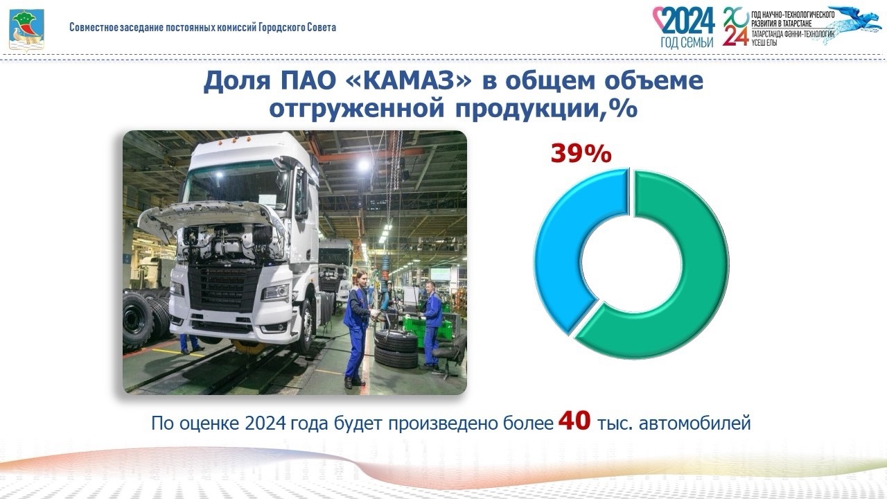 По оценке 39% объема промышленного производства по городу формирует ПАО «КАМАЗ». В 2025 году компания прогнозирует выпуск 47 тыс. грузовых автомобилей.