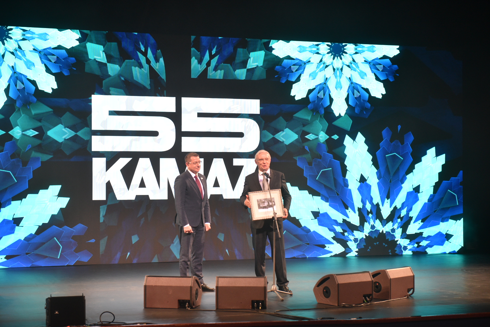 Сегодня в Органном зале Набережных Челнов состоялось торжественное мероприятие, посвященное 55-летию ПАО «КАМАЗ». На памятной встрече присутствовали ветераны и работники автогиганта.Поздравили челнинцев с этой важной датой Раис Республики Татарстан Рустам Минниханов, депутат Государственной Думы Федерального Собрания Российской Федерации Альфия Когогина, заместитель министра промышленности и торговли Российской Федерации Альберт Каримов, мэр города Наиль Магдеев, генеральный директор ПАО «КАМАЗ» Сергей Когогин.
