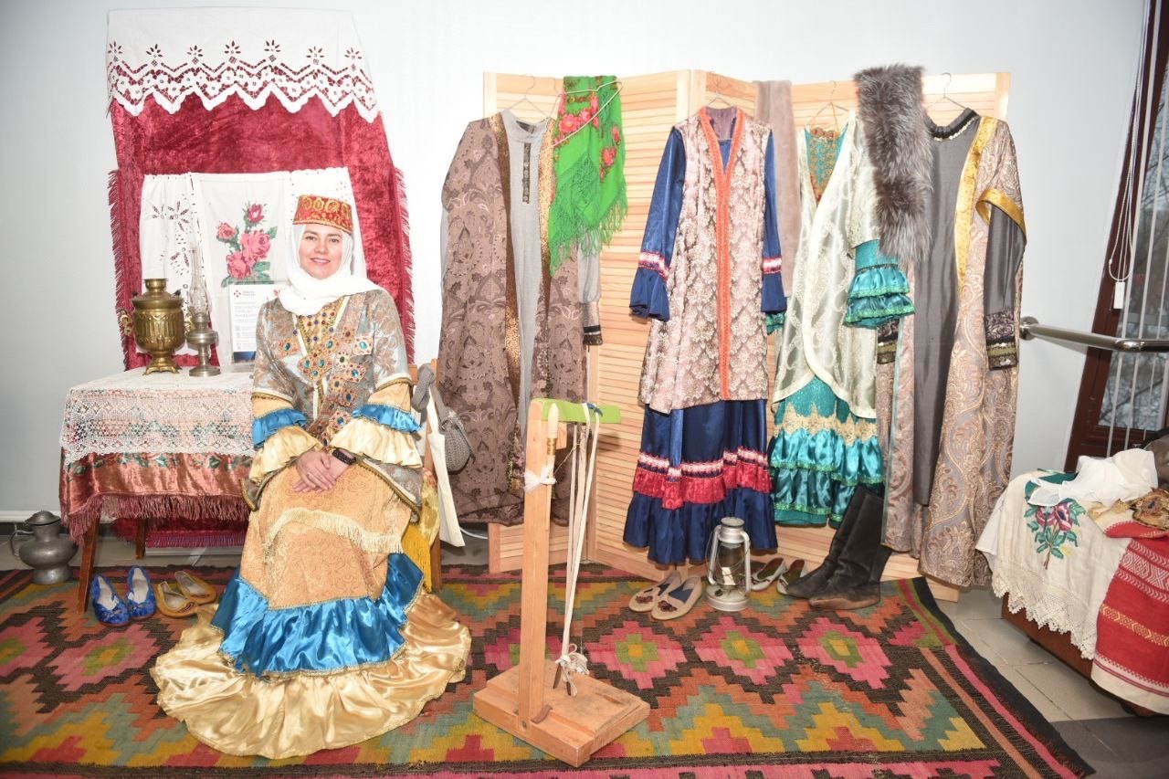 На выставке также представлены интерьерные картины, намазники ручной работы, национальные костюмы и другие изделия и проекты.