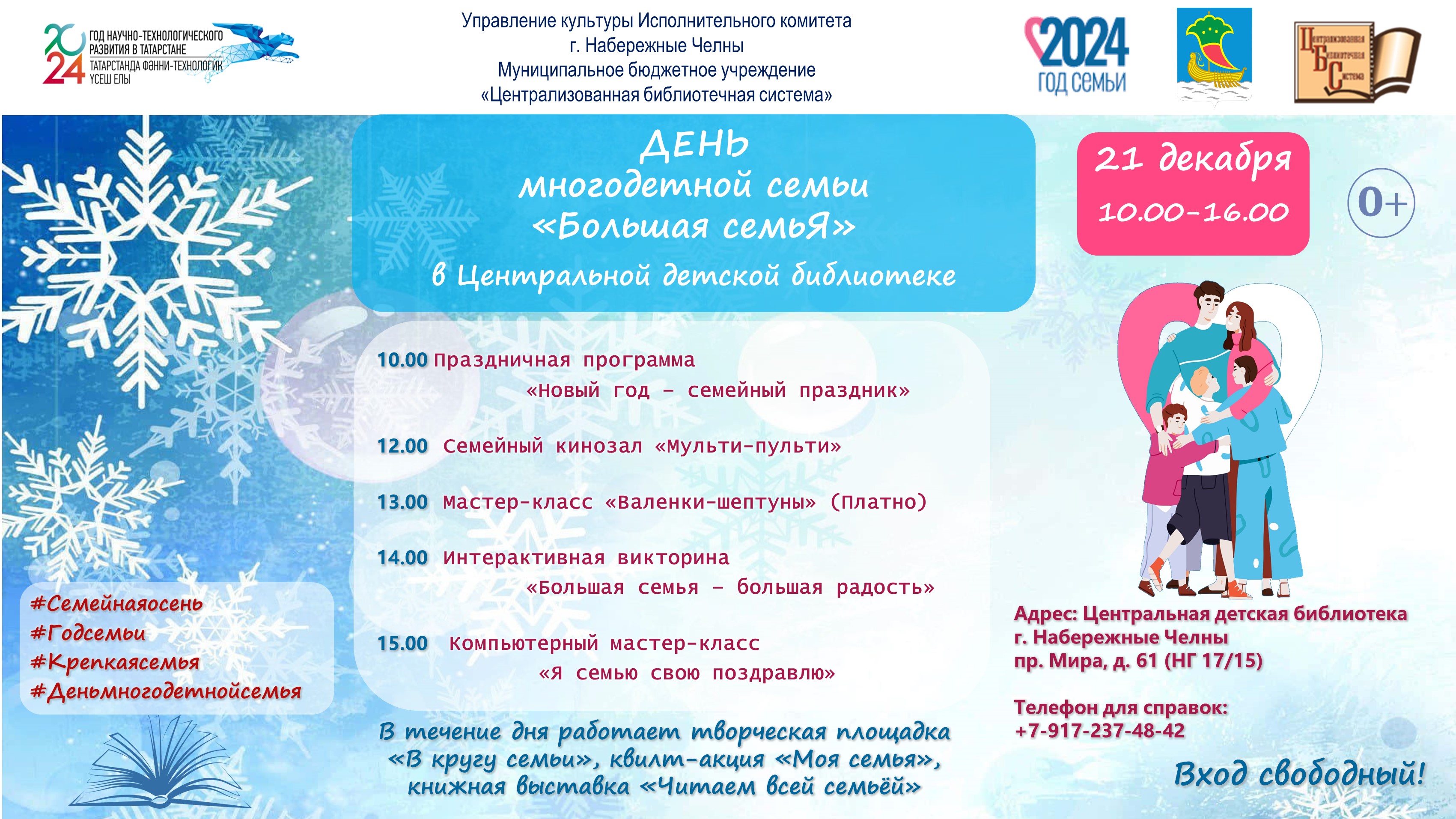 21 декабря Центральная детская библиотека приглашает гостей и жителей города принять участие в мероприятиях, посвященных Дню многодетной семьи.