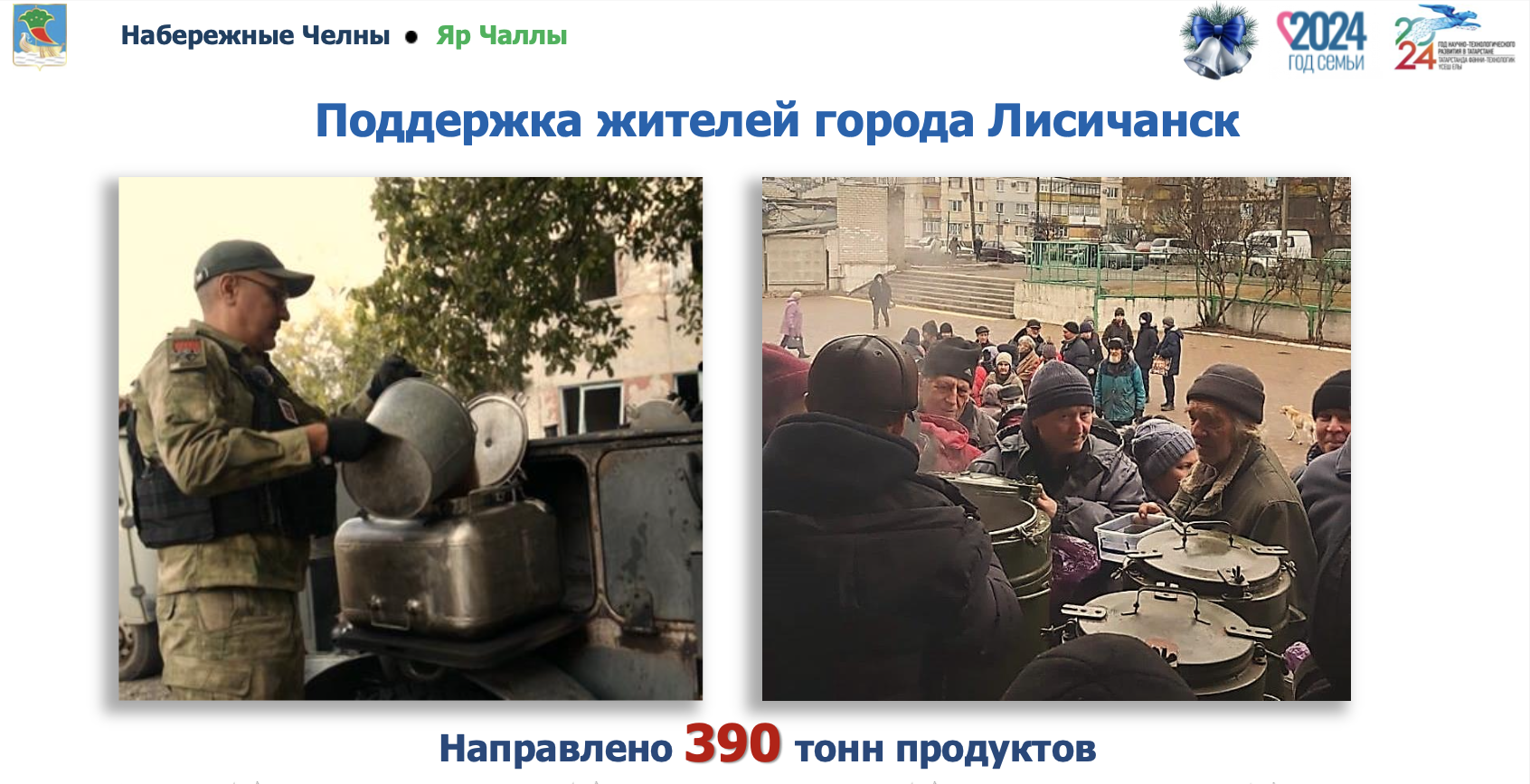 В текущем году мэр города Наиль Магдеев 11 раз посетил зону СВО, чтобы лично передать военнослужащим гуманитарную помощь от челнинцев. «Считаю своим долгом быть рядом с бойцами, которых мы отправили на фронт и поэтому лично сопровождаю гуманитарные грузы и передаю их нашим ребятам. Это дорогостоящееоборудование, техника, продукты питания, медикаменты и другие необходимые вещи», – произнес Наиль Магдеев.