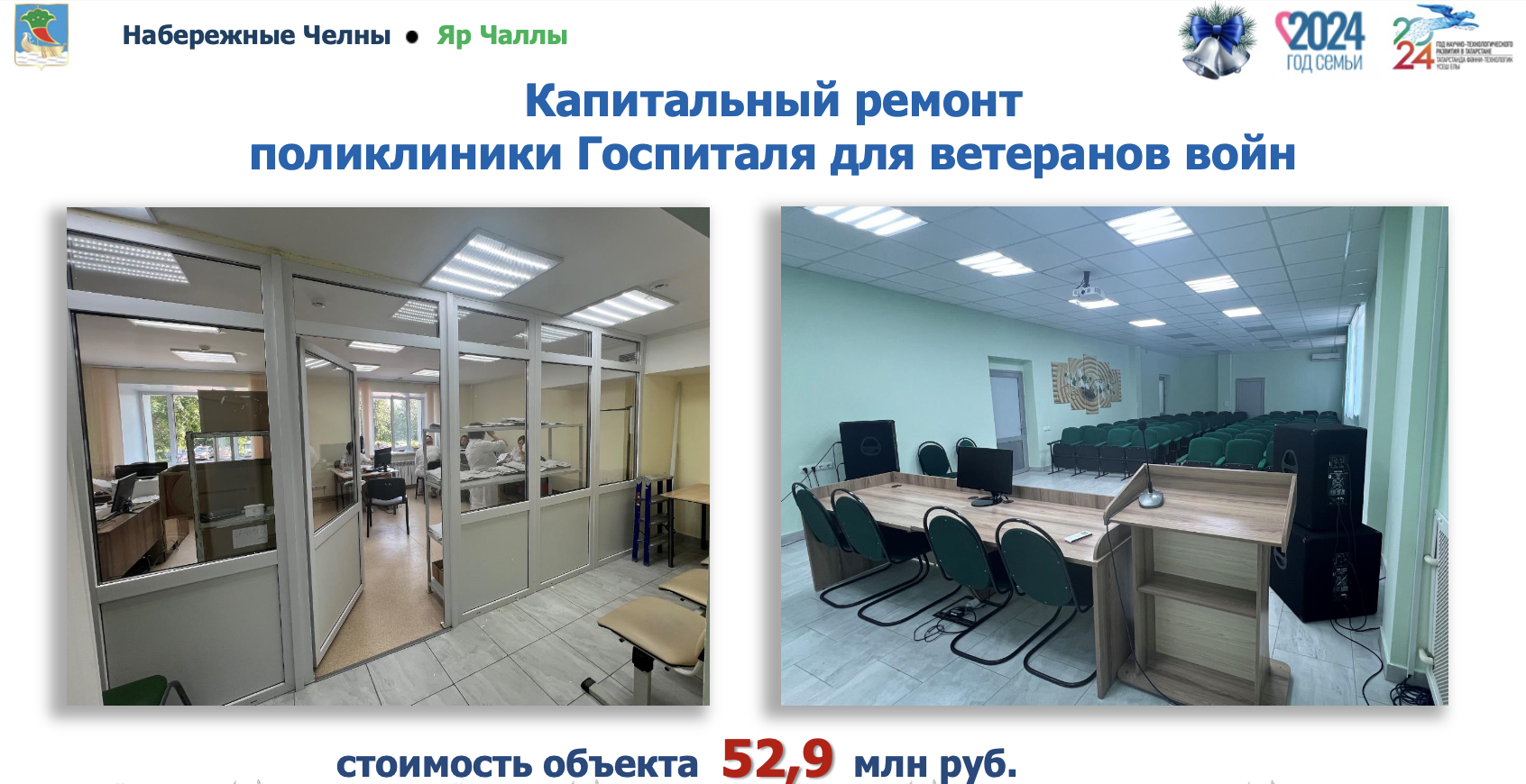 Также проведен капитальный ремонт трех поликлиник города: поликлиника Госпиталя для ветеранов войн», городская поликлиника № 4» блок А и блок В, городская поликлиника № 7.