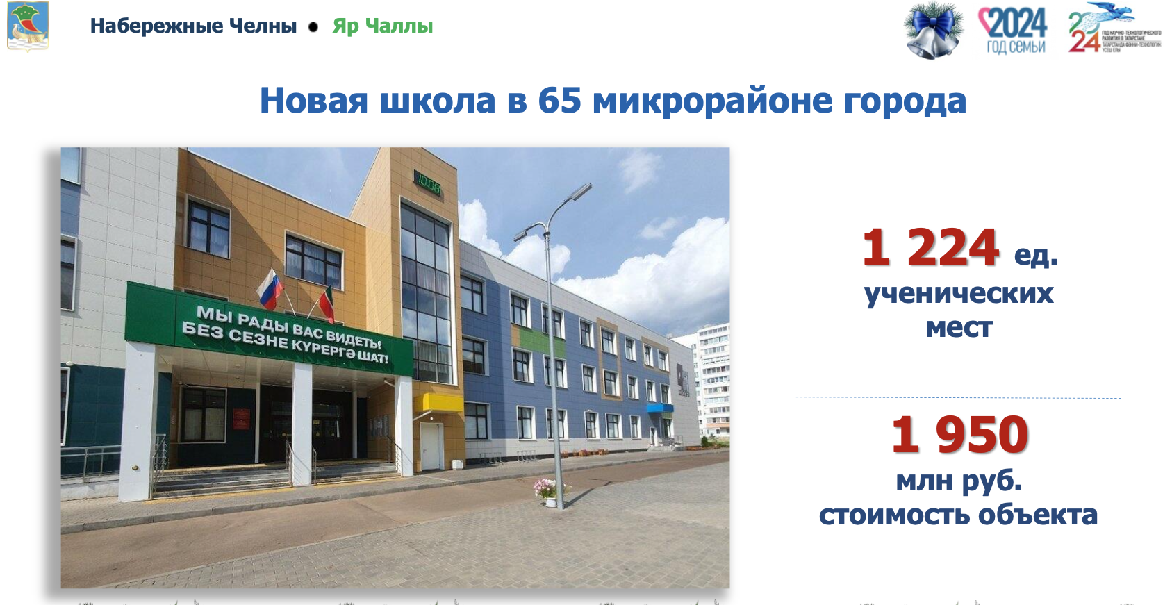 В 65 микрорайоне жилого района «Яшьлек» в этом году построена новая школа на 1224 места. Сегодня в ней обучается уже 1 628 детей. «Открытие нового учреждения позволило соседней школе № 42 избежать обучения в 3-ю смену. Ребята получили классы, оборудованные по самым современным стандартам», – акцентировал Наиль Магдеев.