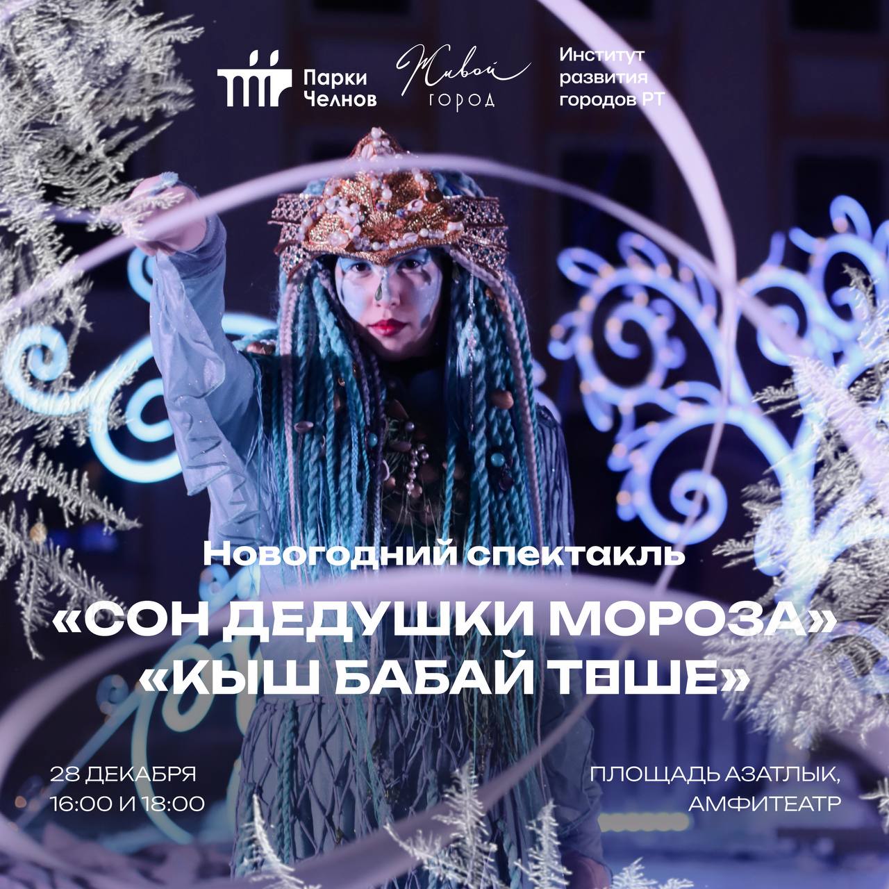 Сегодня, 28 декабря, на площади Азатлык состоится спектакль «Сон Дедушки Мороза – Кыш Бабай төше» от фонда поддержки современного искусства «Живой город». Постановка погрузит гостей в атмосферу волшебства и научит брать ответственность за поступки.