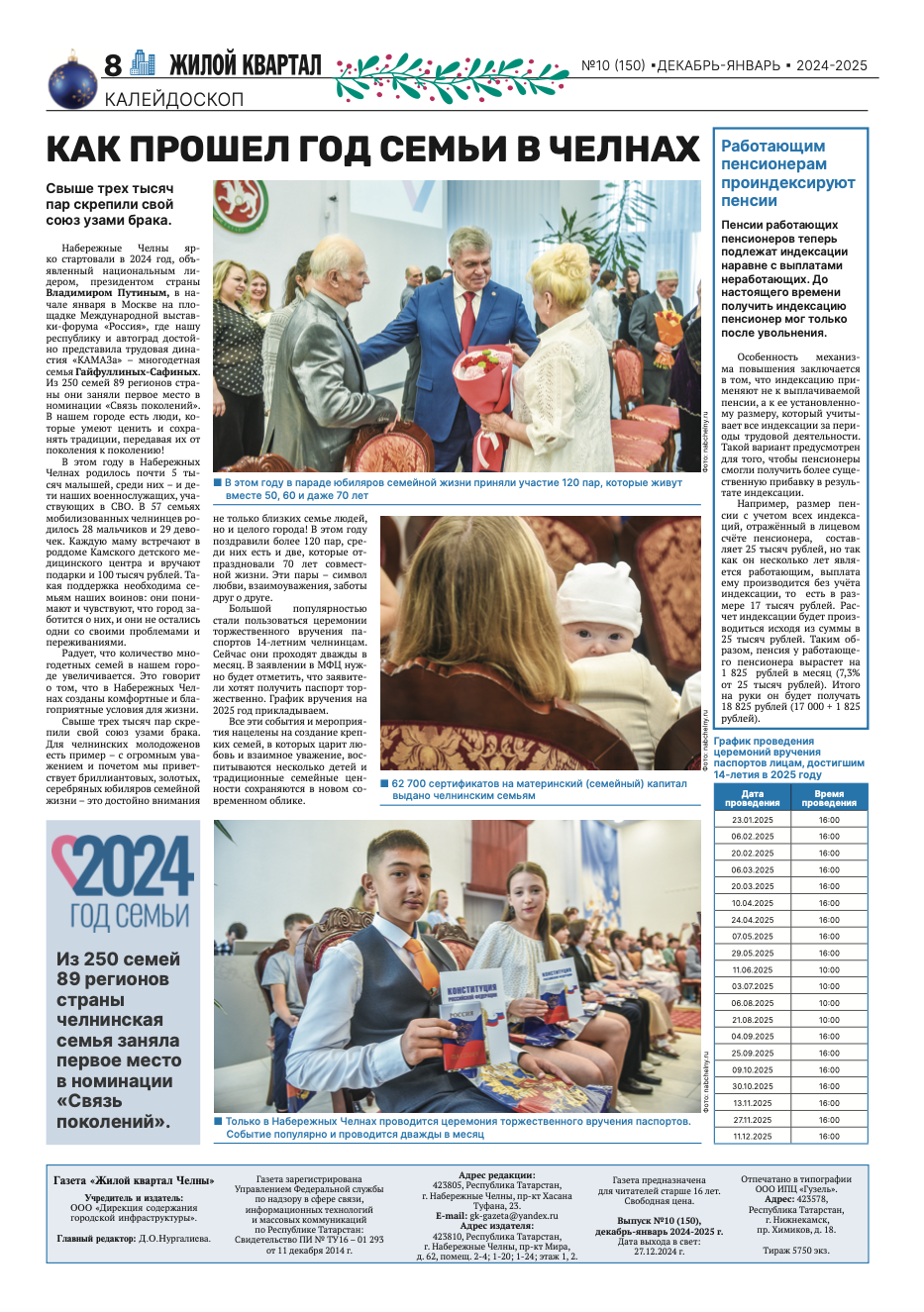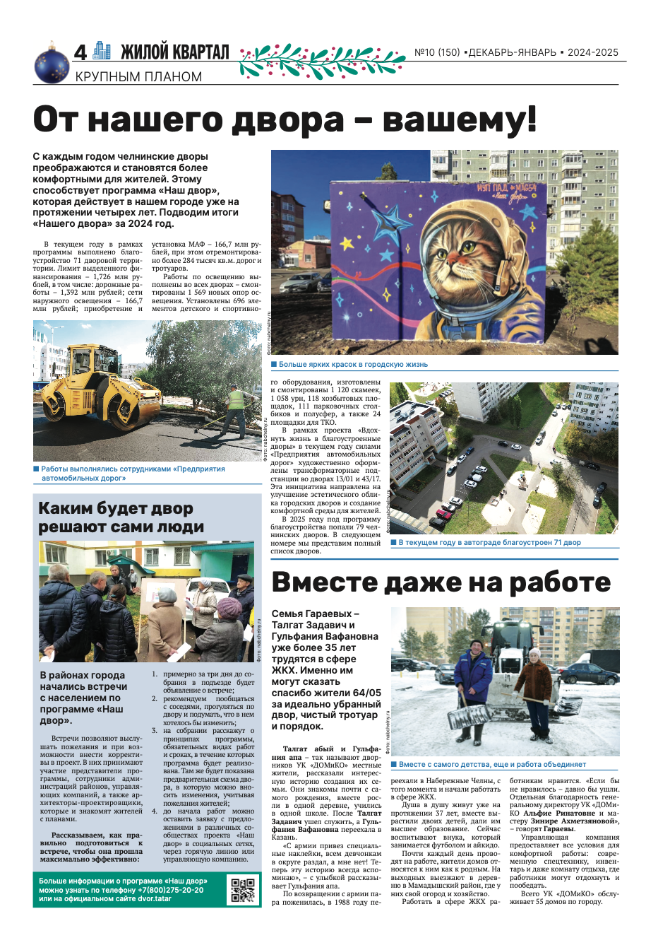 Итоги 2024 года, яркие события Набережных Челнов в сфере ЖКХ и не только. Управление информационной политики и по связям с общественностью представляет крайний выпуск газеты «Жилой квартал», который можно скачать здесь или прочитать ниже.