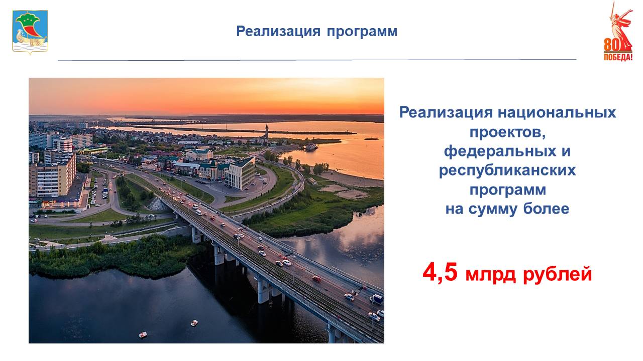 В 2024 году в городе реализовывались федеральные и республиканские программы, в рамках которых за счет средств федерального и республиканского бюджетов построено и капитально отремонтировано объектов на общую сумму 4,5 млрд рублей.
