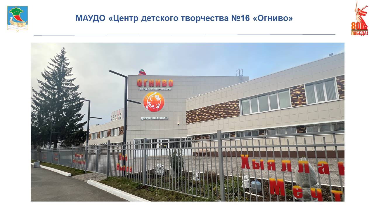 По программе капитального ремонта объектов культуры завершен ремонт Центра детского творчества № 16 «Огниво». Выполнено устройство вентилируемого фасада, отделочные работы, заменены окна и двери, внутренние инженерные сети, установлены новое оборудование и мебель, благоустройство территории.