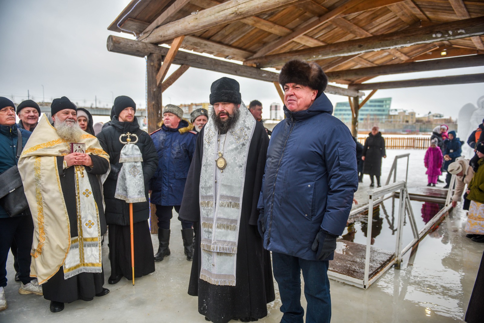 Мэр отметил, что Владыка сегодня проводит крещение впервые в Набережных Челнах.