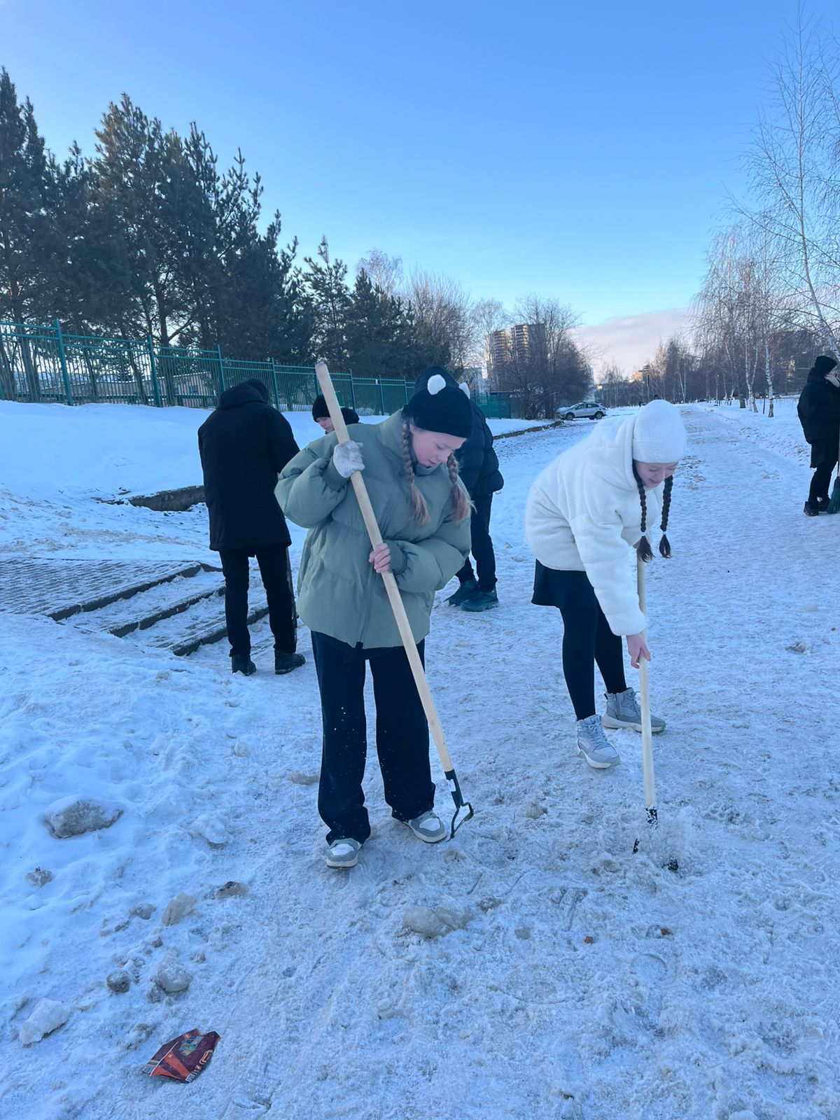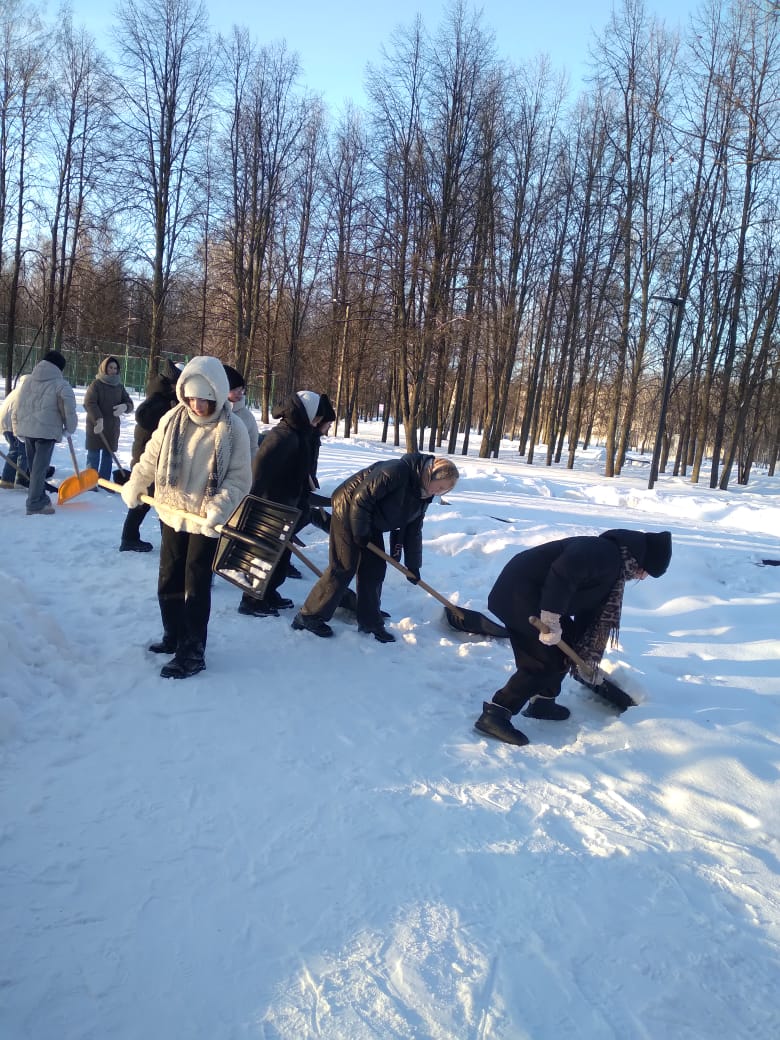 Студенты Набережночелнинского педагогического колледжа провели работу по очистке дорожек и тротуаров от снега в парке Гренада.