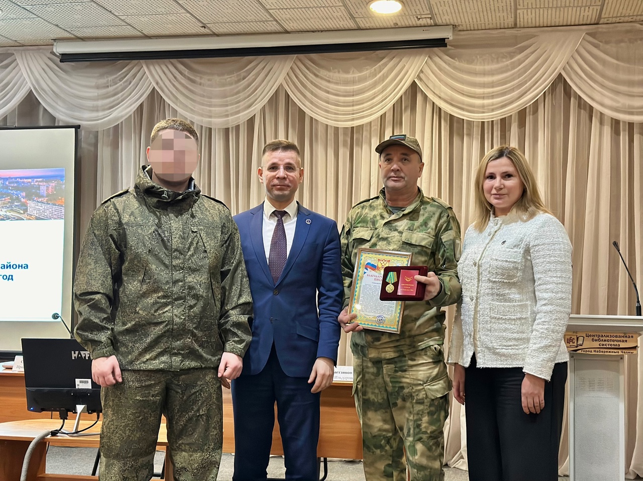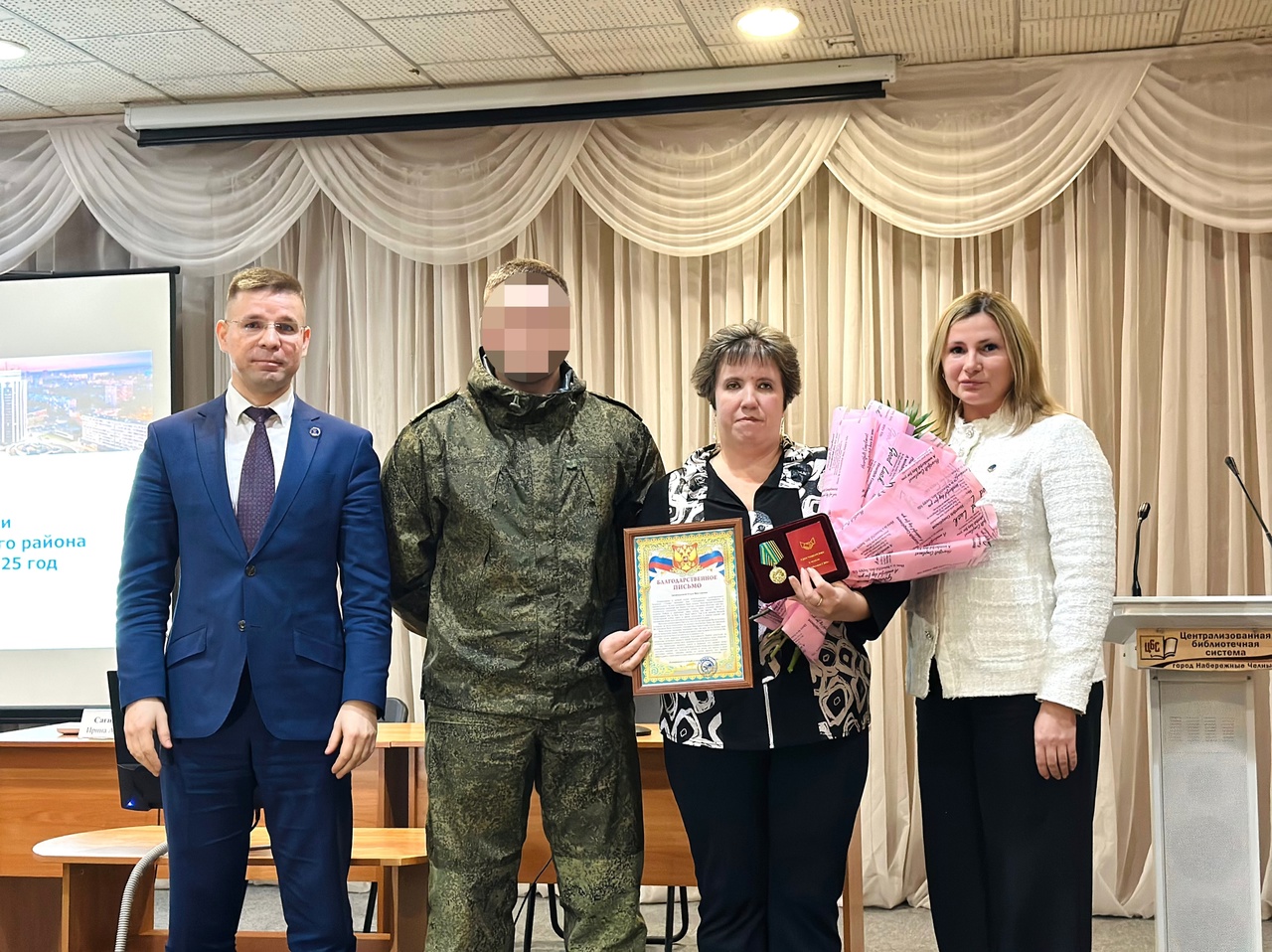 Председателю ассоциации ТОС Ольге Айдимировой и председателю ТОС «Вилюй-1» Илгизу Сагидуллину вручили медали и благодарственные письма от батальона «Тимер».