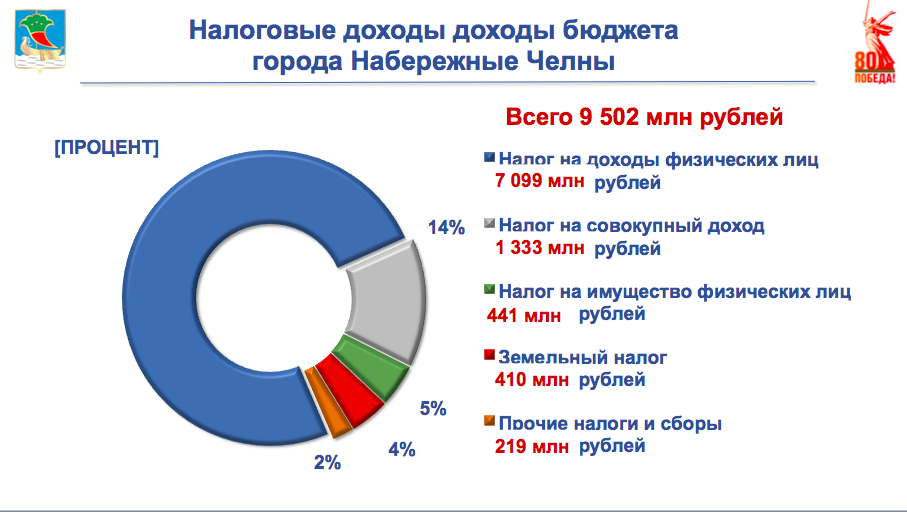 Основной рост собственных доходов связан с увеличением поступления налога на доходы физических лиц на 2 млрд 288 млн рублей, по упрощенной системе налогообложения на 311 млн рублей и неналоговых доходов на 401 млн рублей. Основная доля в налоговых доходах относится к налогу на доходы физических лиц, которая составляет 75%. Об этом в рамках аппаратного совещания с мэром Наилем Магдеевым сообщила заместитель руководителя Исполнительного комитета, начальник управления финансов Светлана Мулюкова.