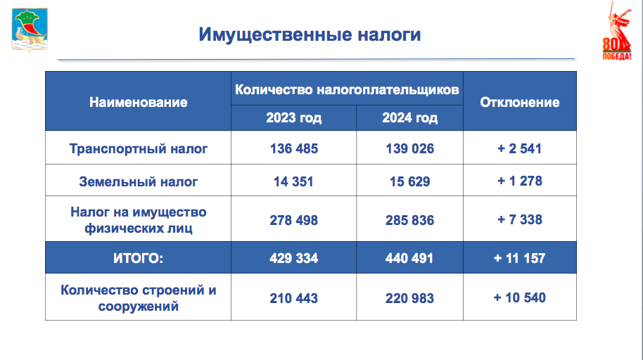 Необходимо отметить, что наблюдается увеличение количества налогоплательщиков по имущественным налогам на 11 тысяч человек и количества строений на 10 тысяч 500 единиц", – отметила Светлана Мулюкова.