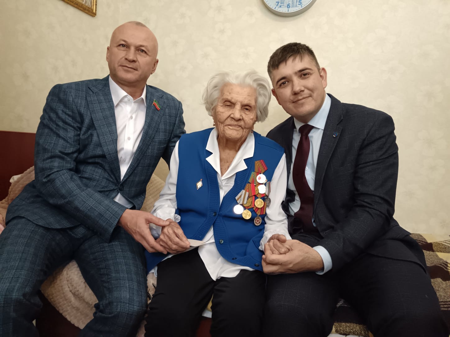 Депутат Государственного Совета Республики Татарстан Олег Николаев и глава администрации Центрального района Фидарис Хабибуллин вручили ветеранам Великой Отечественной войны Федосье Ивановне Ракитиной и Ольге Ивановне Варламовой юбилейные медали «80 лет Победы в Великой Отечественной войне 1941-1945 гг.».