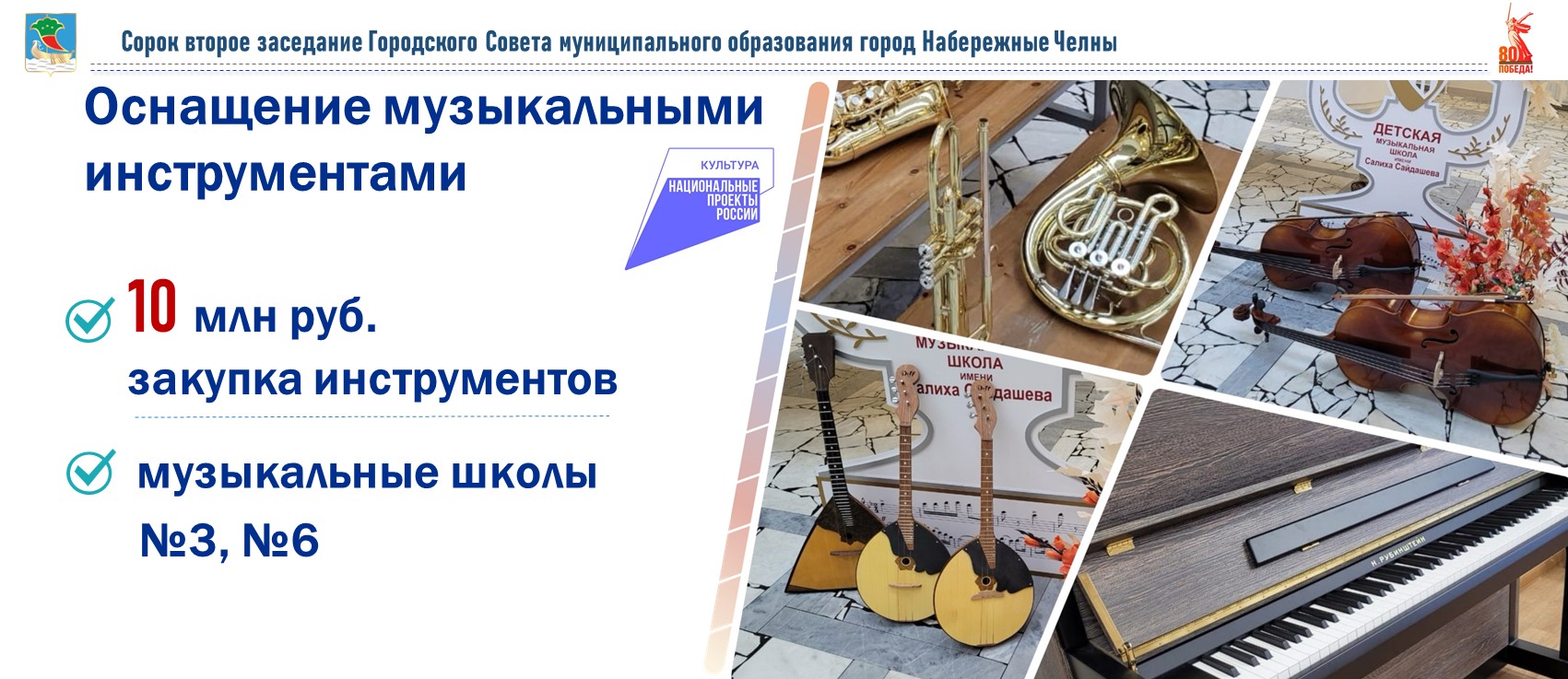 В 2024 году грантовую поддержку получили 23 проекта в сфере культуры и искусства. В рамках национального проекта «Культура» музыкальные школы №3 и №6 были обеспечены необходимыми инструментами.
