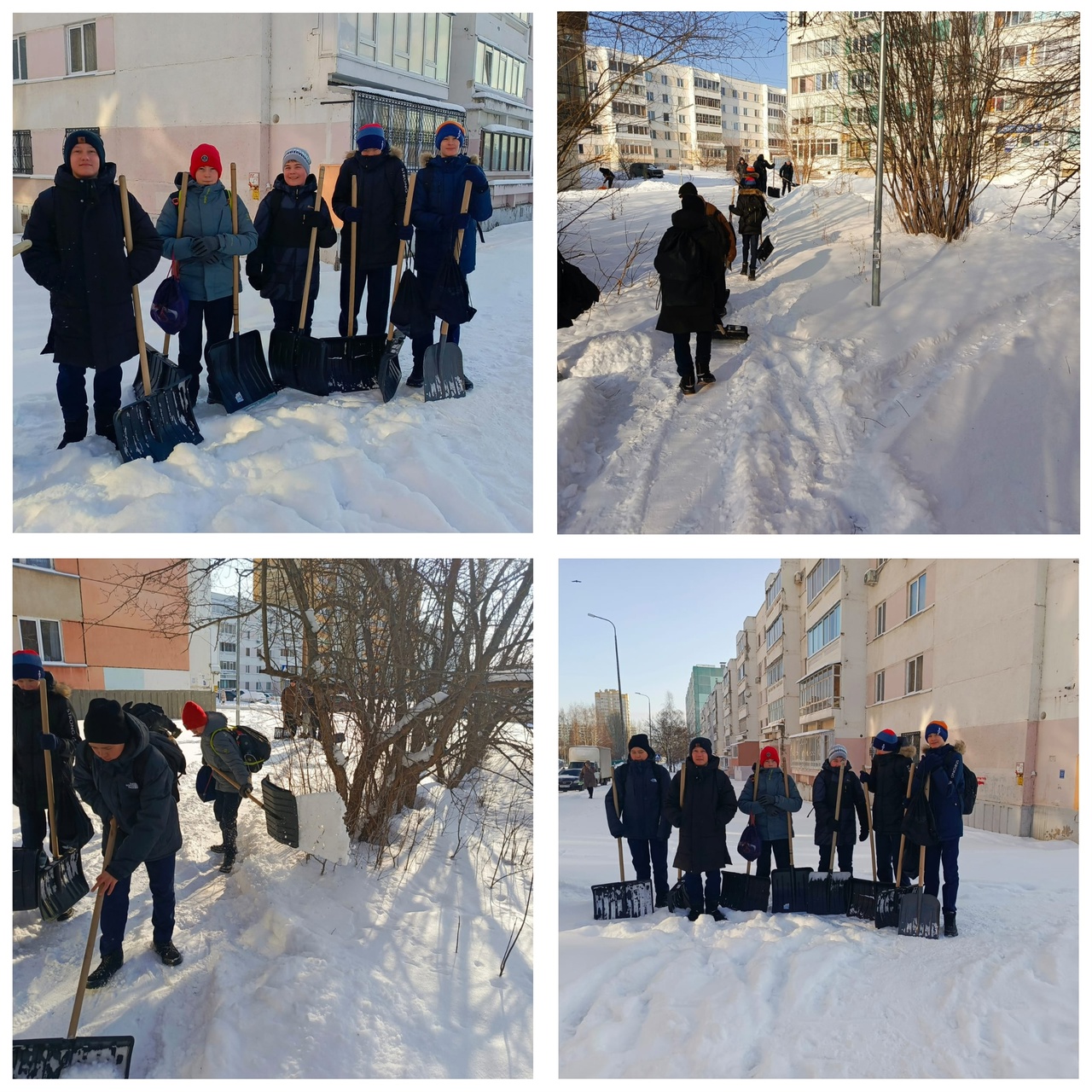 Сегодня учащиеся челнинских школ №22, 25, 45, 58 вышли на помощь городским службам в очистке территории от снега. Совместными усилиями была очищена территория бульвара Солнечный.