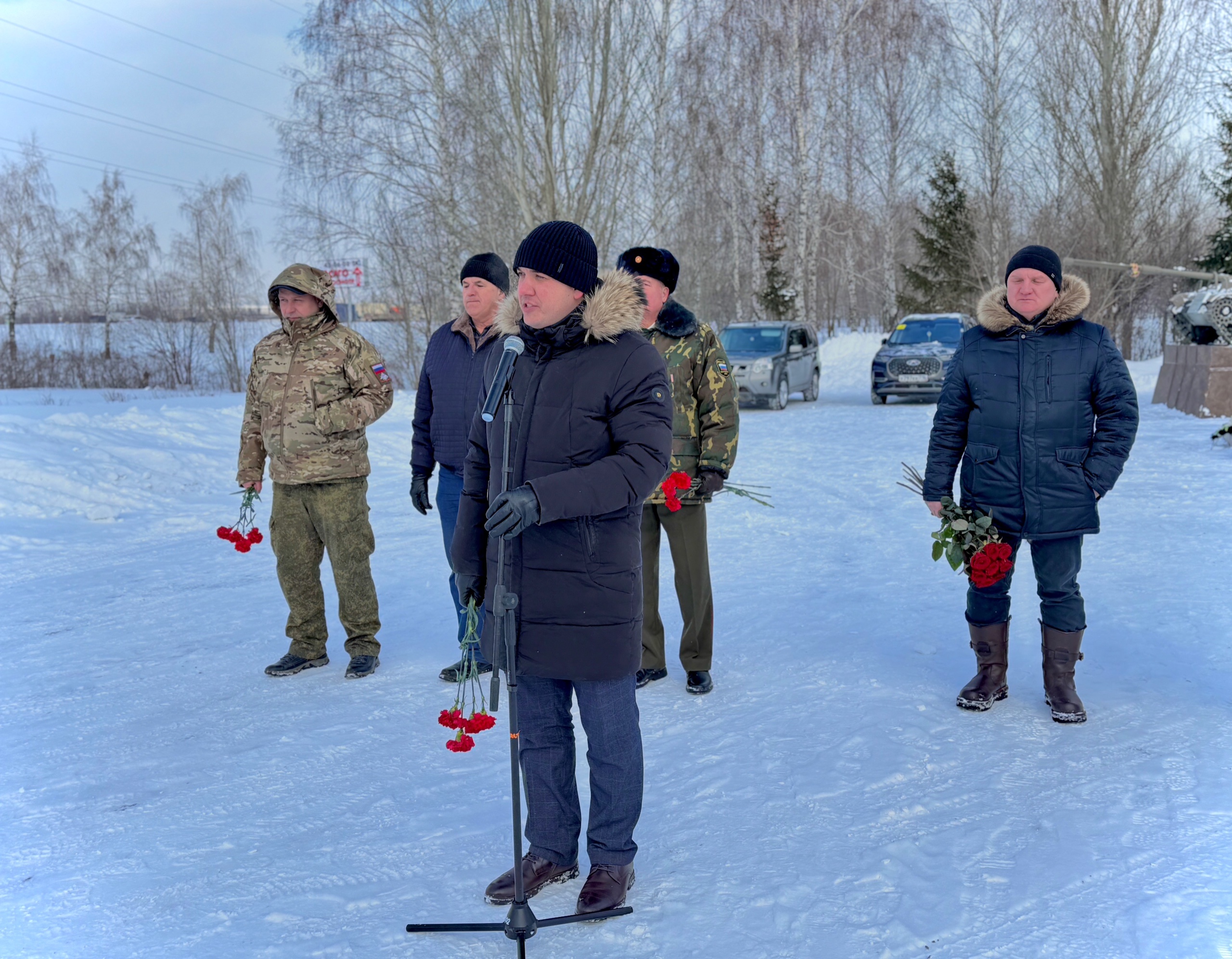В центральном районе у памятника «Воинам Отечества» состоялось торжественное возложение цветов, посвященное Дню защитника Отечества. Почетными гостями церемонии стали глава администрации Центрального района Фидарис Хабибуллин и депутат Городского Совета Андрей Елантьев.