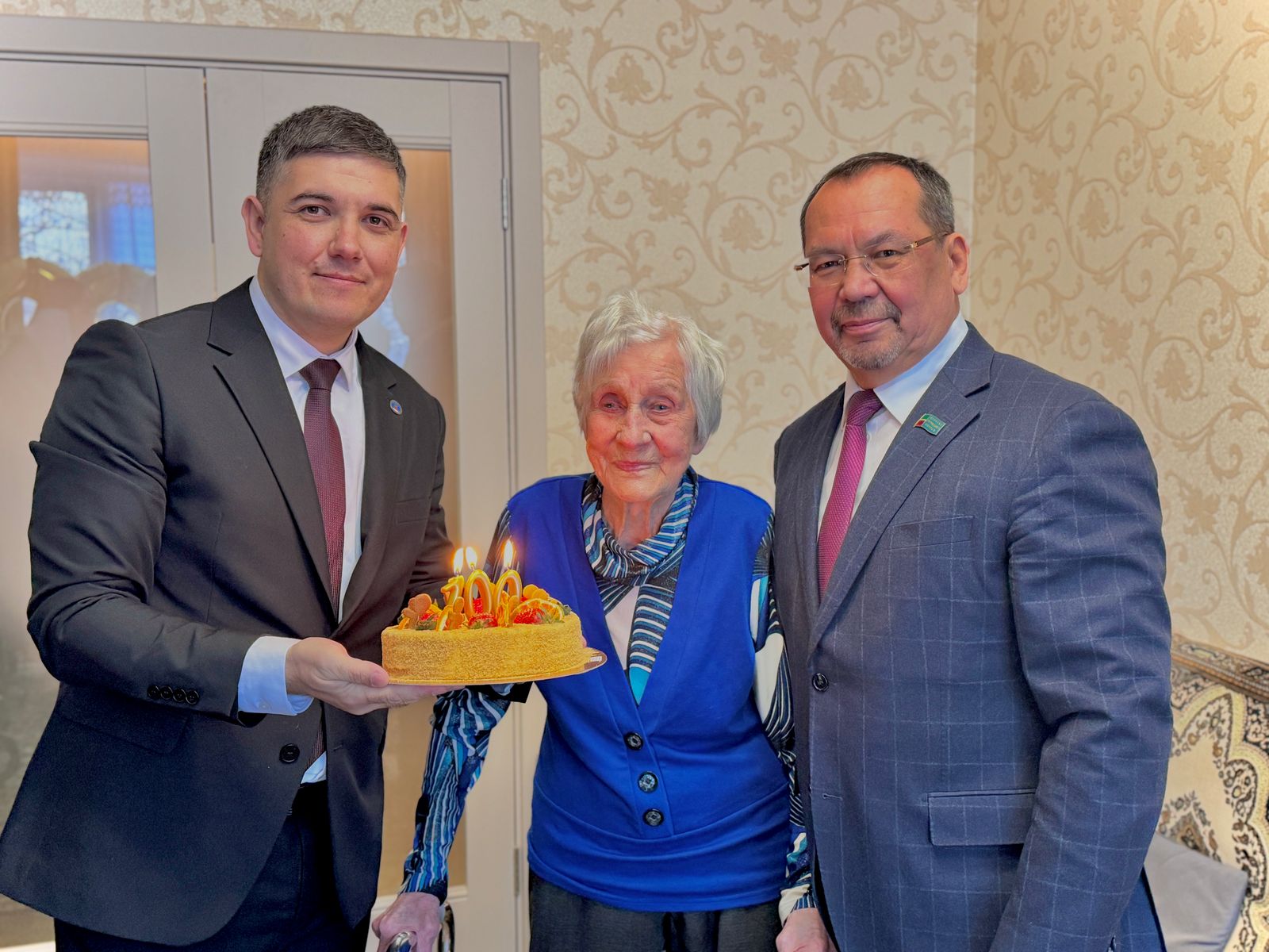 Ветерана поздравили глава администрации Центрального района Фидарис Хабибуллин, депутат Городского Совета Ахат Галаутдинов, председатель ТОС «Энтузиасты» Валентина Березникова. Юбиляру вручили юбилейную медаль «80 лет Победы в Великой Отечественной войне 1941-1945 гг.».