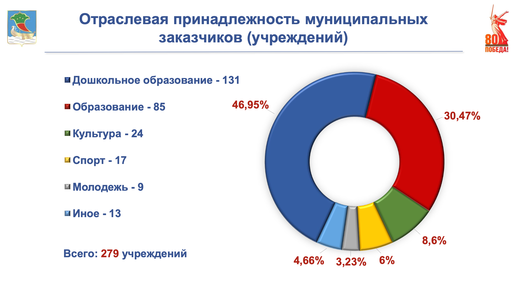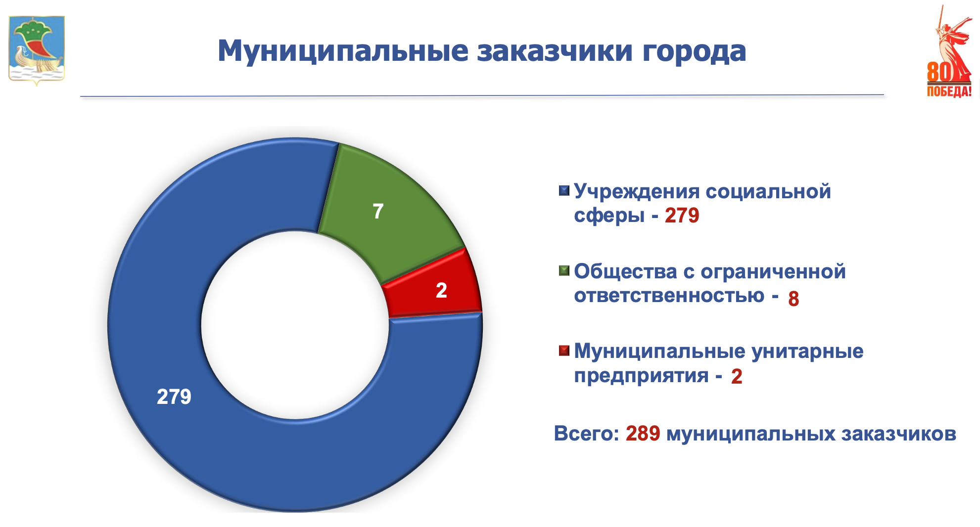 Отдел муниципального заказа проводит торги для 289 муниципальных заказчиков. Муниципальными заказчиками нашего города в 2024 году заключено 21 954 контракта на сумму 7 млрд 401 млн рублей. По сравнению с 2023 годом удалось сократить количество договоров на одноименную продукцию, за счет укрупнения закупок. Вместо нескольких договоров в году на один и тот же товар заказчики в 2024 году заключали один договор.
