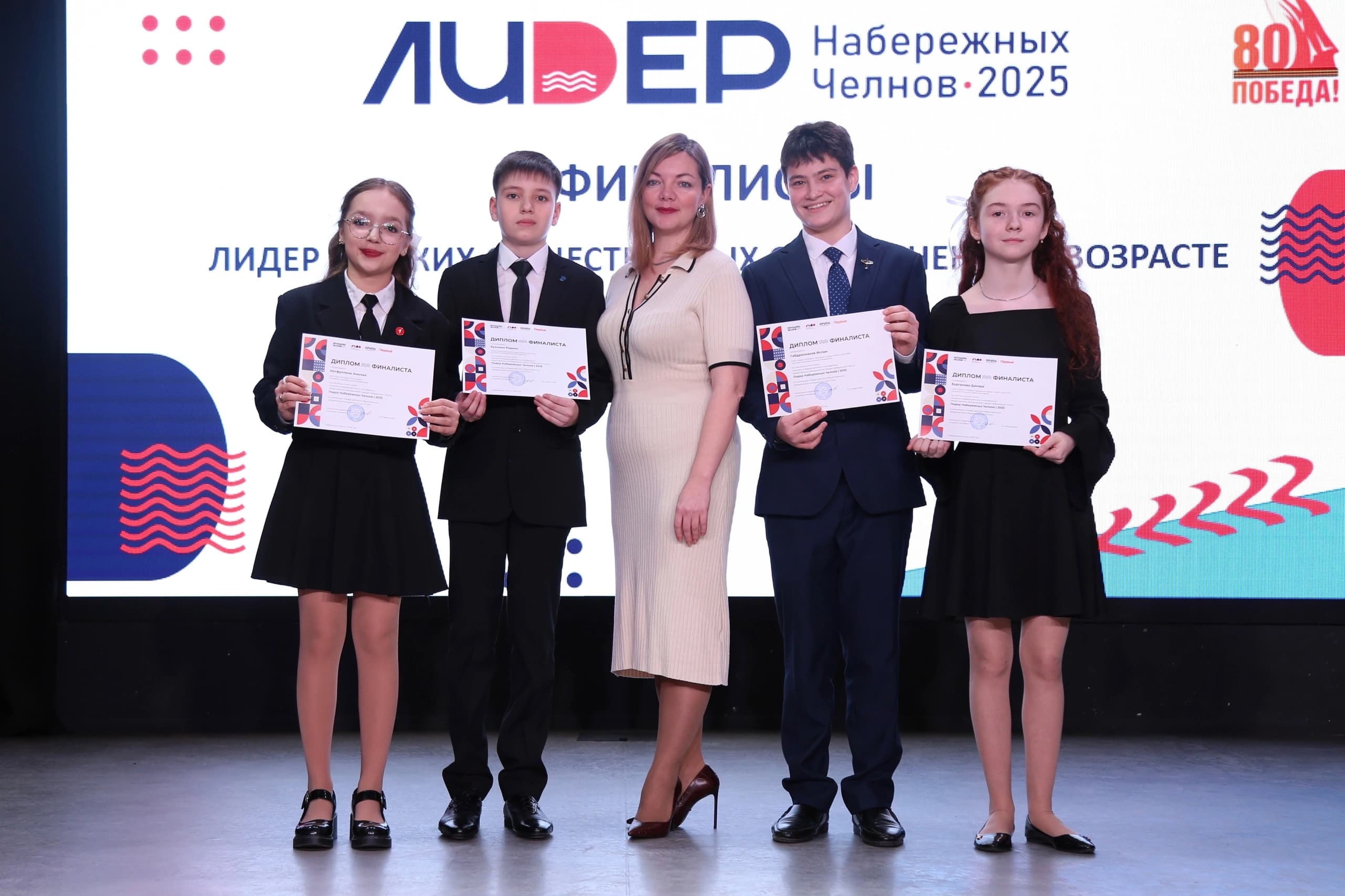 В Набережных Челнах завершился конкурс «Лидер Набережных Челнов-2025». В этом году «Лидер» был посвящен 80-летию Победы в Великой Отечественной войне и Году защитника Отечества. Конкурс проводился в два этапа. На заочный этап поступило 93 заявки, для участия были допущено 87 конкурсантов. Финалистами-участниками очного этапа стали 32 человека.Так, в номинации «Лидер детских общественных объединений в возрасте от 11 до 13 лет» дипломом третьей степени награждена Дарина Манова, диплом второй степени – Виктория Виденеева, диплом первой степени завоевал Николай Биба.В номинации «Лидер детского и (или) молодежного общественного объединения в возрасте от 14 до 16 лет» диплом третьей степени у Ренаты Султановой, дипломом второй степени награжден Сергей Большаков, диплом первой завоевала Елизавета Бубекова.В номинации «Лидер Совета Первых первичного отделения «Движение первых» от 14 до 16 лет» дипломом третьей степени награждена Альмира Мардисламова, диплом второй у Дарьи Храмцовой, диплом первой степени получила Айсылу Акбирова