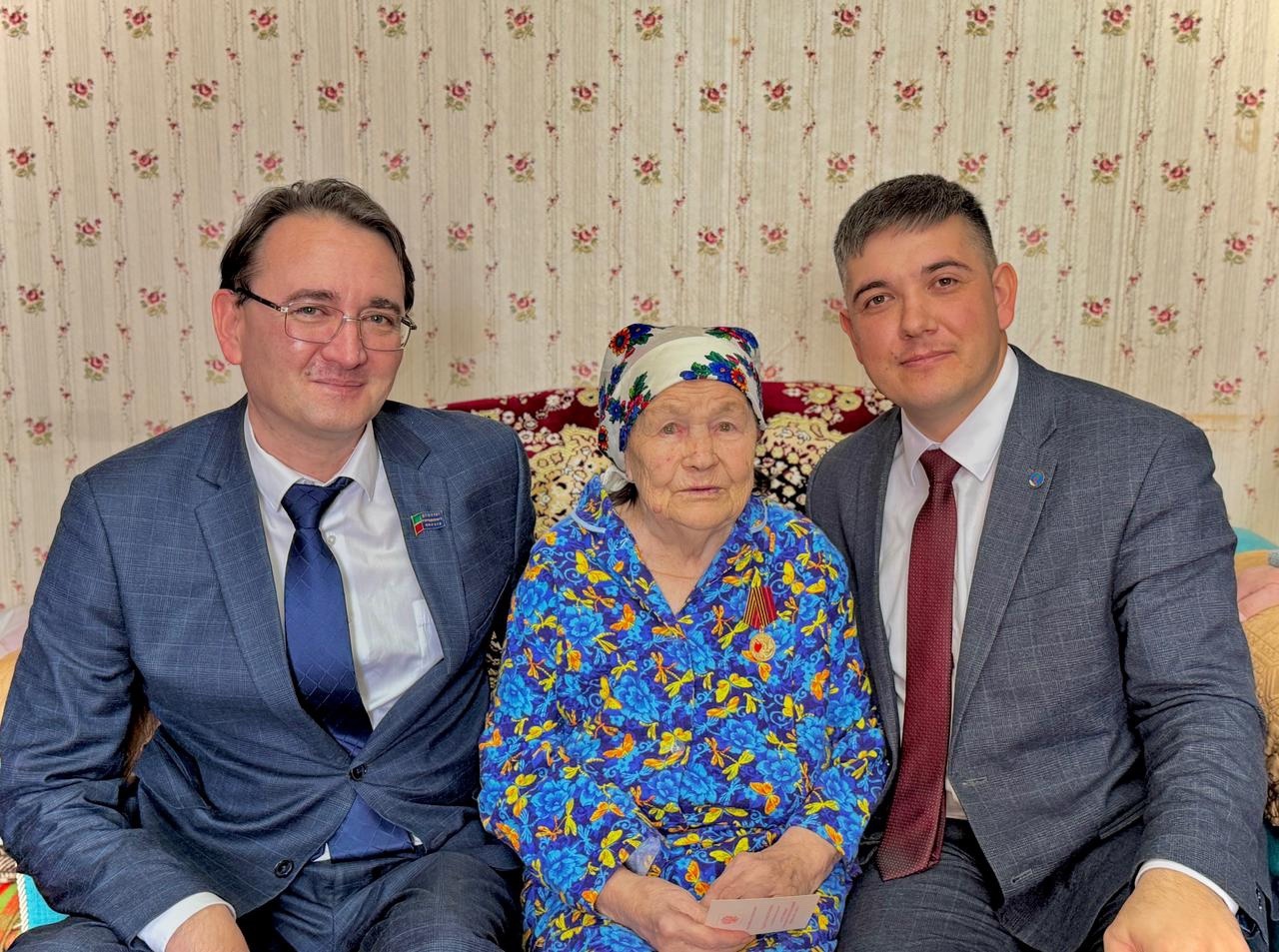 Фидарис Хабибуллин навестил ветерана Великой Отечественной войны Нурдиду Калимулловну Галиуллину и вручил ей юбилейную медаль «80 лет Победы в Великой Отечественной войне в 1941-1945 гг.». Нурдида Калимулловна посвятила всю жизнь образованию, работая учителем.