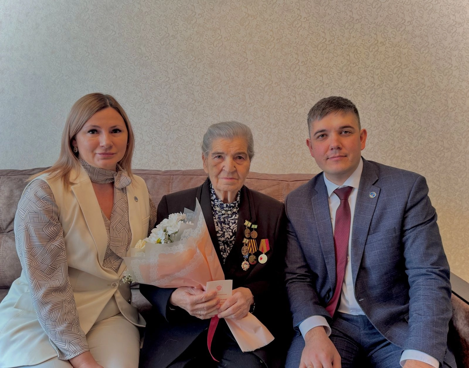 Заместитель главы муниципального образования Ирина Сагидуллина совместно с главной Центрального района Фидарисом Хабибуллиным вручили юбилейную медаль «80 лет Победы в Великой Отечественной войне 1941-1945 гг.» жителю Блокадного Ленинграда Валентине Федоровне Сединой.