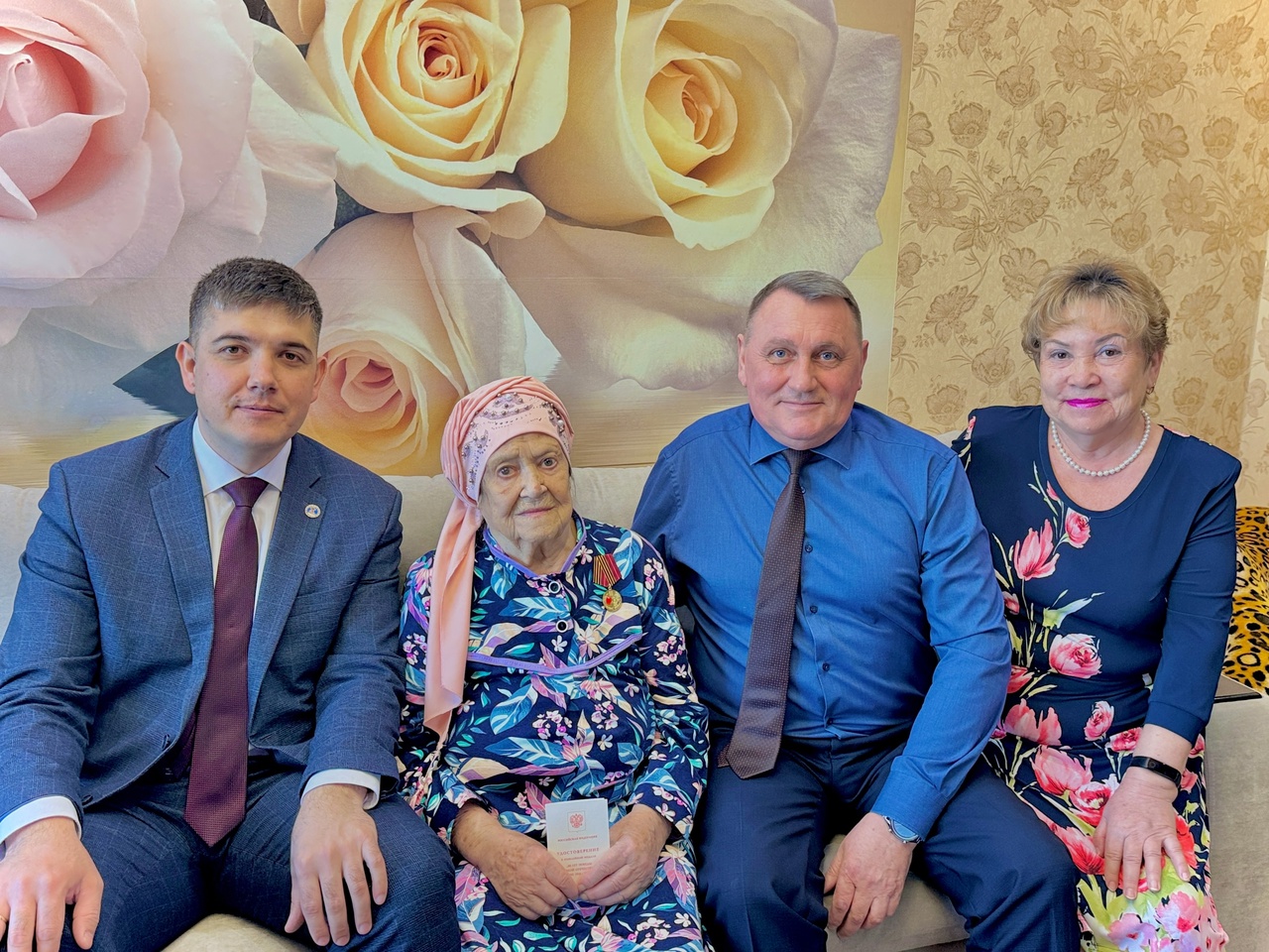 Юбилейные медали «80 лет Победы в Великой Отечественной войне 1941-1945 гг.» и подарки вручены — Разие Зайнулловне Файзрахмановой, Софие Зиннатулловне Шаиховой, Василе Шарафутдиновне Хасановой, Арсентию Алексеевичу Кузнецову, Пелагее Кузьминичне Лухмановой, Галине Васильевне Косаревой, Антонине Степановне Пшеничниковой и Назие Кашаповне Шакирзяновой.