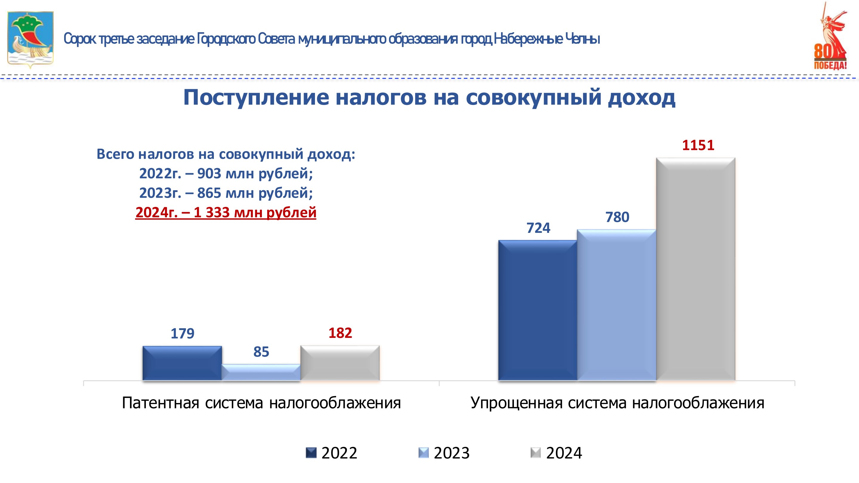 За 2024 год налог на совокупный доход получен в сумме 1 млрд 333 млн рублей. Уточненные плановые назначения исполнены в полном объеме.