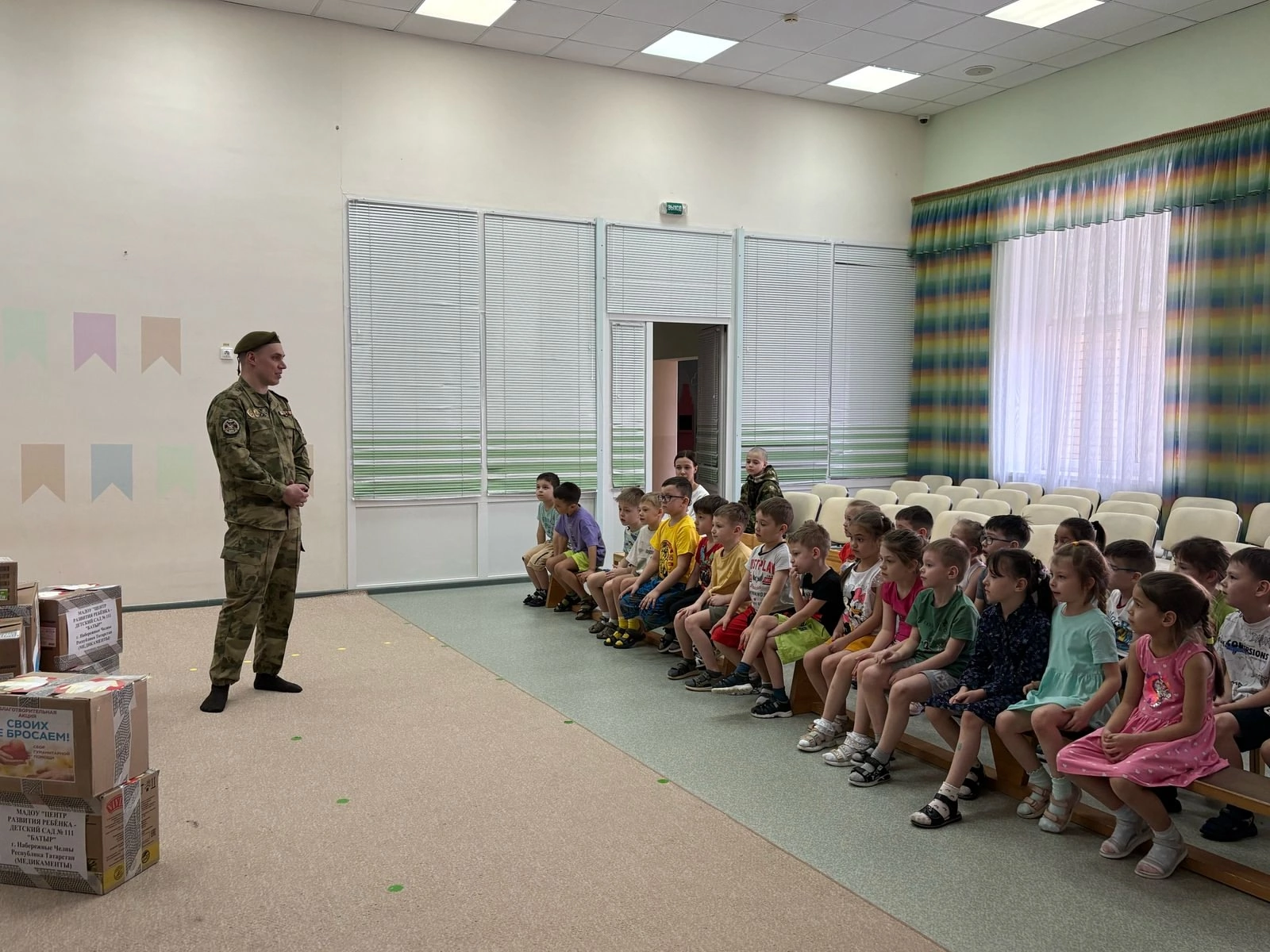 Кроме того, в детском саду прошел урок мужества, который провел активист Набережночелнинского отделения партии «Единая Россия» Тимур Нусратов. Воспитанникам рассказали о подвигах российских солдат, важности сплоченности и взаимопомощи.