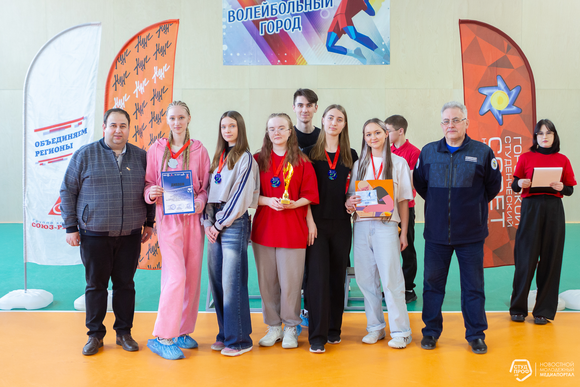 В церемонии награждения приняли участие председатель Федерации волейбола Игорь Чернышов, директор молодежного центра «Нур» Евгений Сироткин и председатель Городского студенческого совета Тимур Шарифуллин.