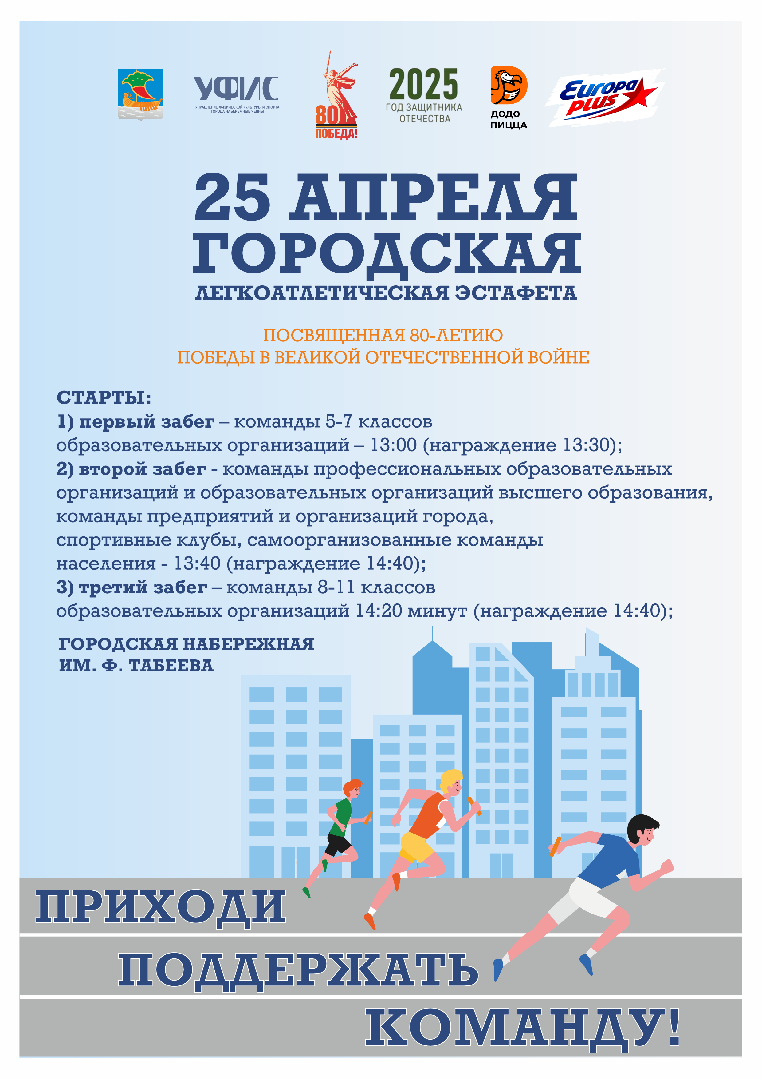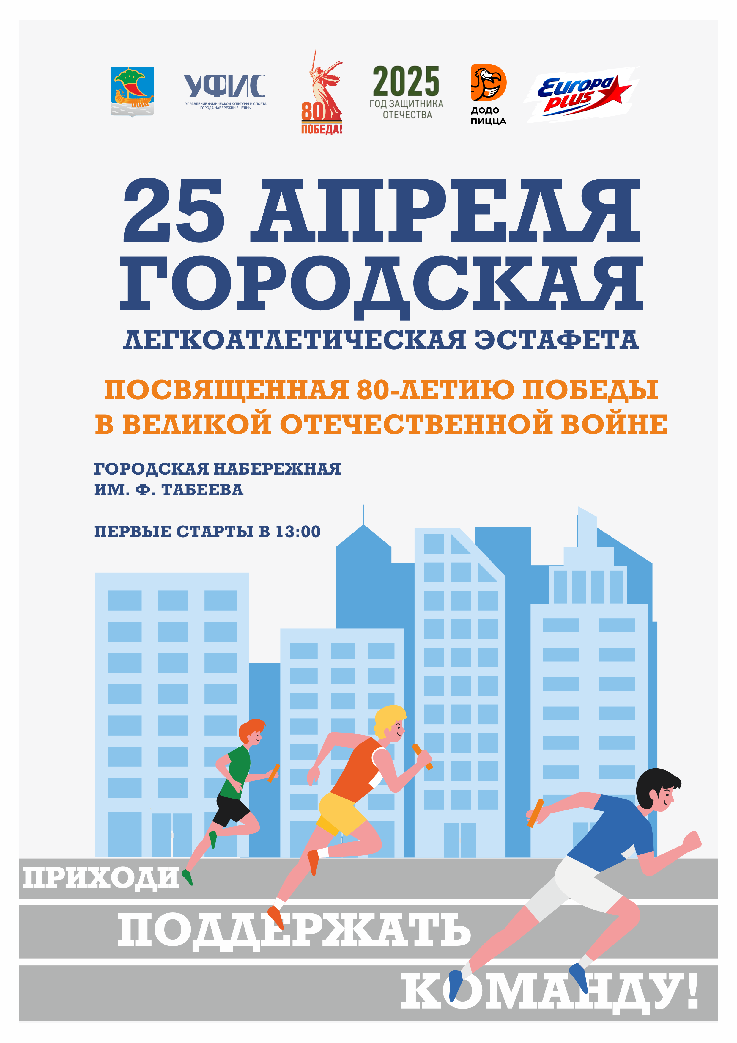 25 апреля на городской набережной имени Фикрята Табеева состоится 51-я традиционная городская легкоатлетическая эстафета. В этом году ее посвятили 80-й годовщине Победы в Великой Отечественной войне, а также открытию летнего спортивного сезона 2025 года в городе.