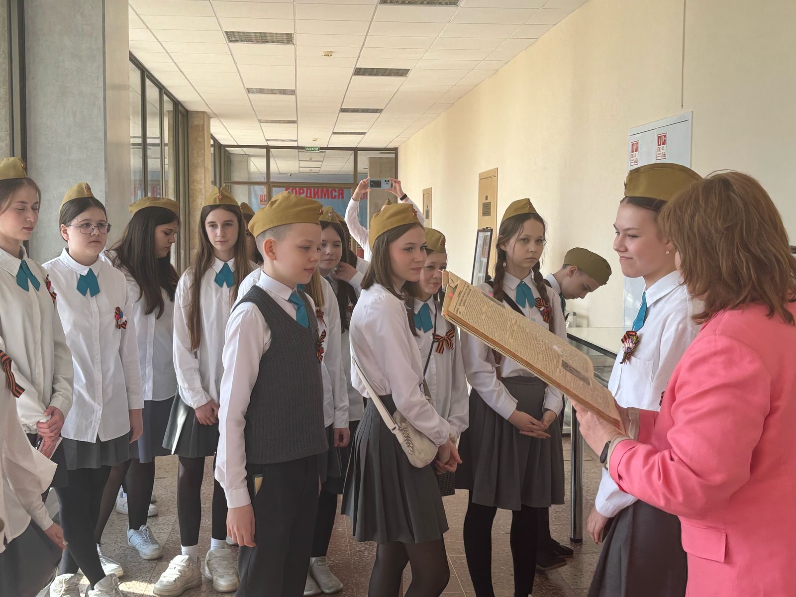 Кроме экскурсионной программы школьники также участвовали в акции «Строки опалённые войной». Они читали вслух публикации тех времён, раскрывающие фронтовые события весны 1943-го и майские дни 1945 года. Через личные истории героев ребята осознали важность памяти о великом подвиге народа.