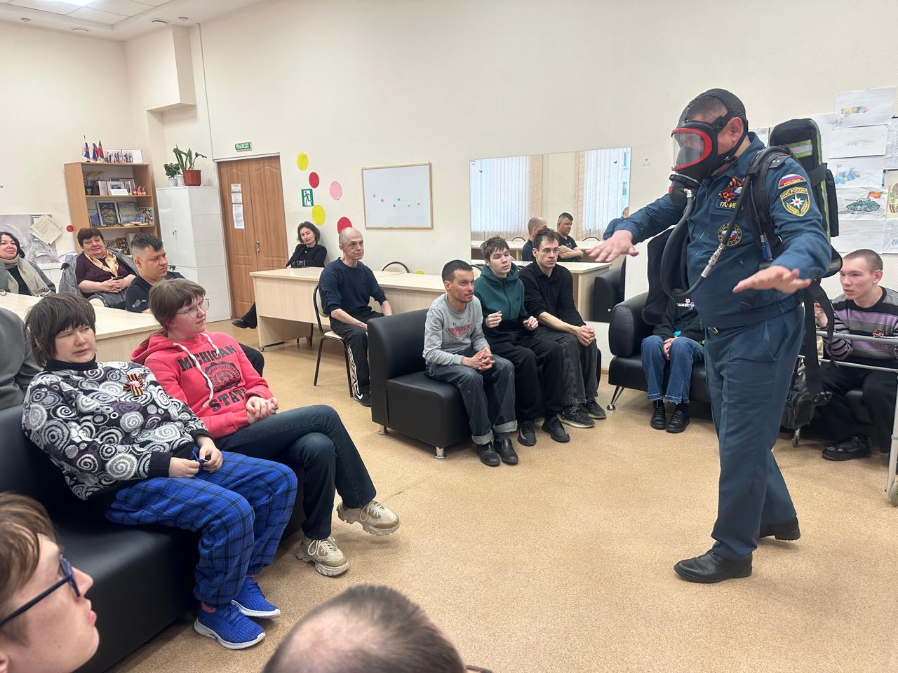 Помощник начальника караула пожарно-спасательной части № 15 пожарно-спасательного отряда Камиль Ганиев встретился с подопечными центра социального обслуживания населения «Доверие». Встреча была посвящена вопросам правил поведения при чрезвычайных ситуациях, способам эвакуации и действиям при пожаре.