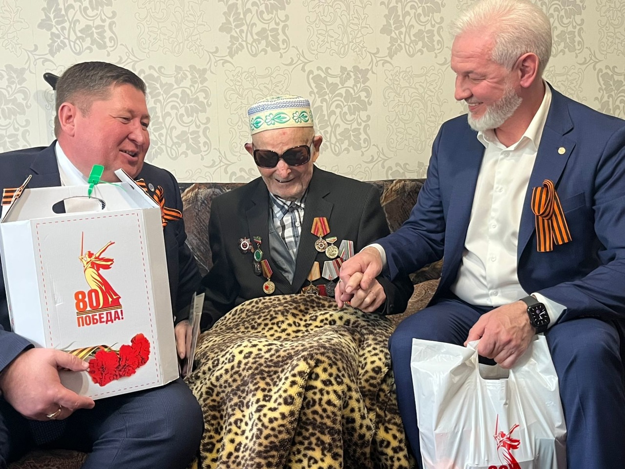 Глава администрации Автозаводского района Айрат Хуснуллин совместно с исполнительным директором ОАО «РИАТ» Владимиром Мельниковым навестили участника Великой Отечественной войны Фарукшина Мухтасима.