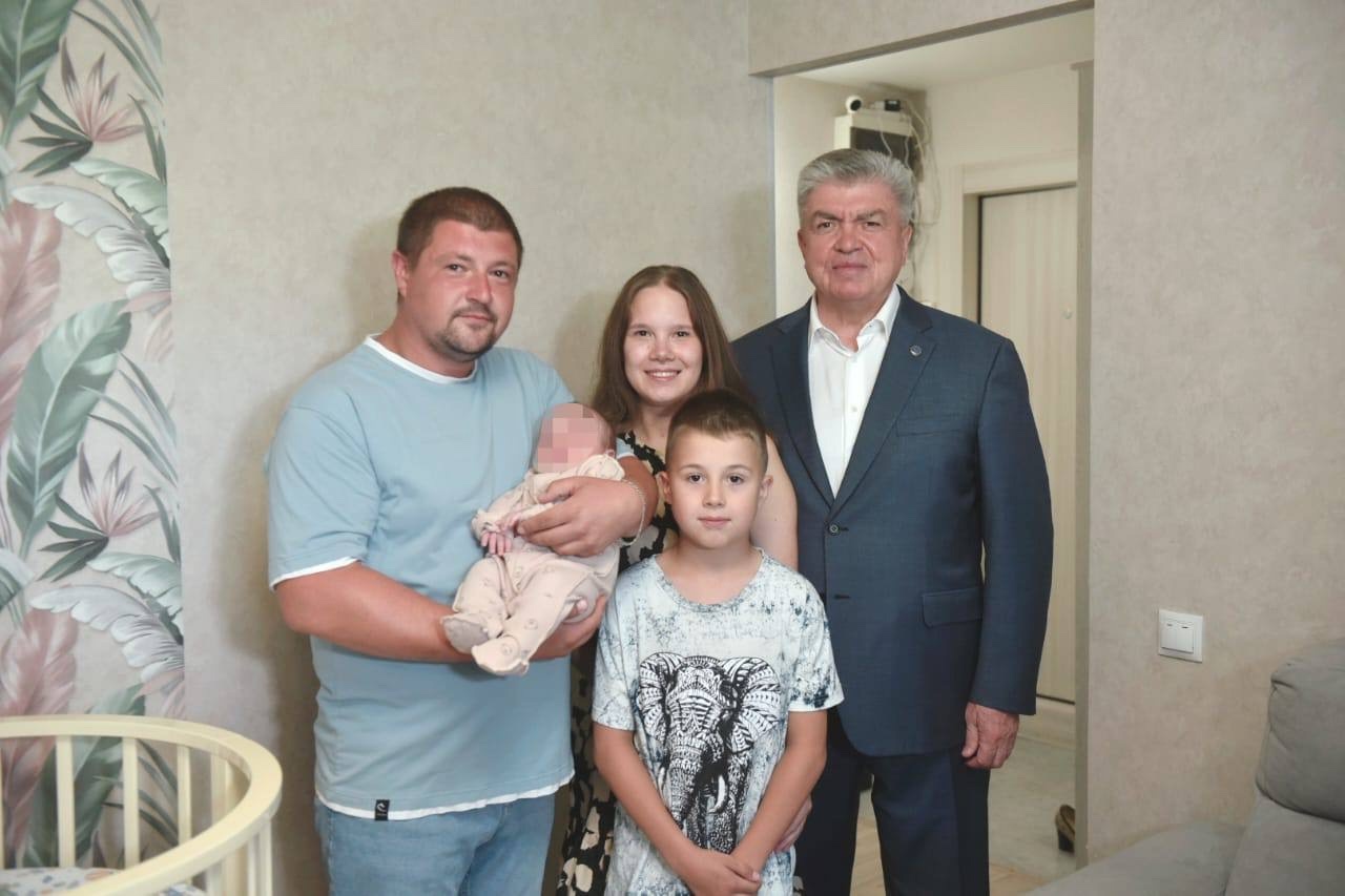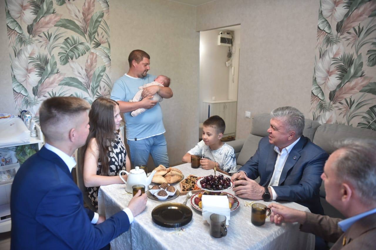 Мэр Наиль Магдеев вручил семье Еньковых подарки и 100 тысяч рублей.