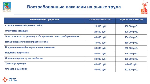 Самые высокооплачиваемые рабочие профессии: водители (различных категорий) – им работодатели готовы платить до 250 тысяч рублей, наладчики – до 180 тысяч, слесарь по ремонту автомобилей – до 130 тысяч.