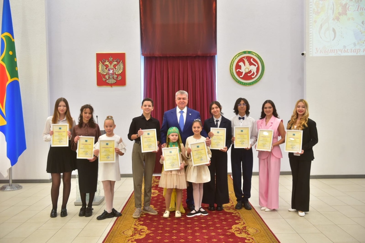Мэр вручил заслуженные награды отличившимся педагогам: нагрудный знак Министерства культуры Республики Татарстана «За достижения в культуре» получили учитель детской музыкальной школы №6 имени Салиха Сайдашева Танзиля Мардамшина и учитель детской школы искусств Луиза Султанова. Почетной грамоты Министерства культуры Республики Татарстан удостоена учитель детской музыкальной школы №2 Светлана Арютина, благодарности Министерства культуры Республики Татарстан – учитель детской театральной школы Алевтина Стальмакова.