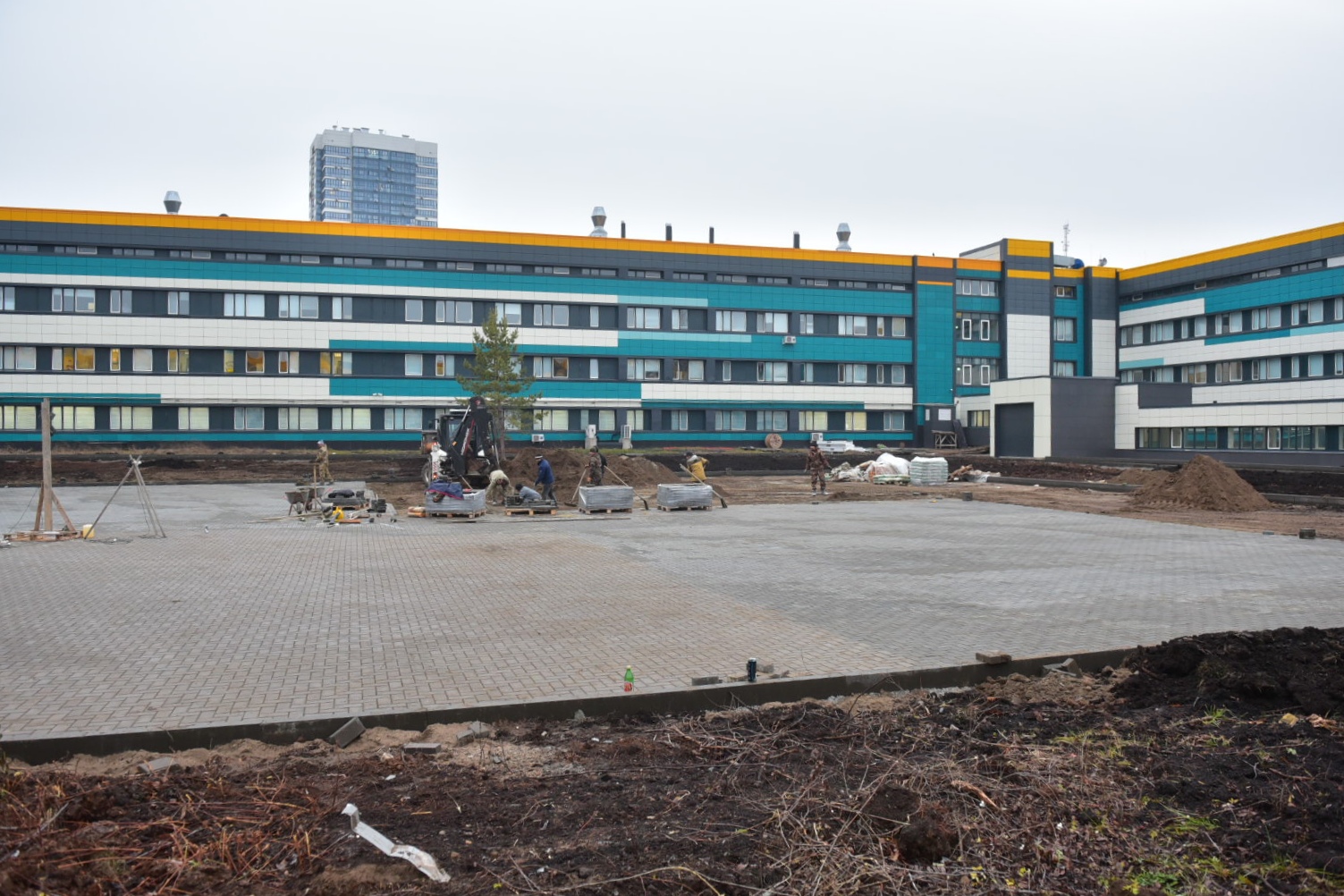 За счет городского бюджета появилось еще одно нововведение – внутренний двор больницы. Рабочие завершают обустройство территории, вскоре будет проведено озеленение, сказал Фарид Салахов: «Мы всегда подходим к этому вопросу комплексно. Для того, чтобы привести в функционально-эстетическое состояние и внутреннюю территорию, разработан дендроплан. На этой неделе планируем посадить здесь деревья». Кроме того, это пространство при необходимости может использоваться для размещения дополнительных модулей.