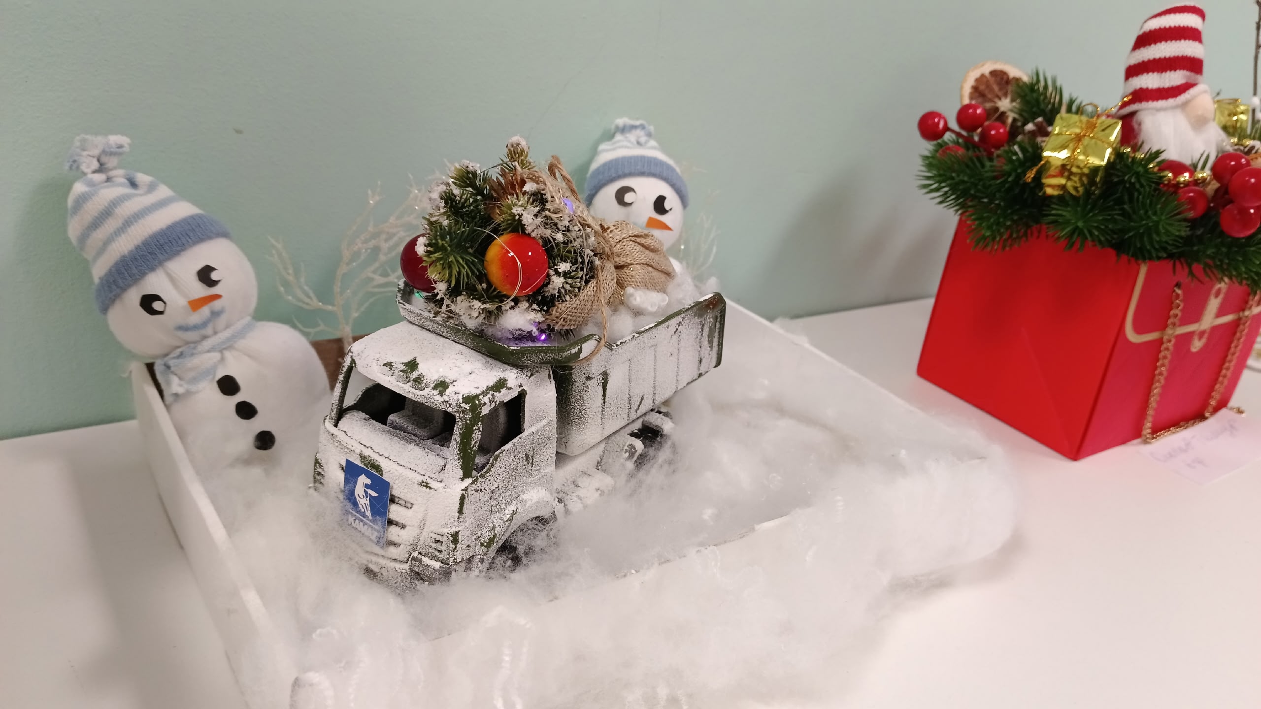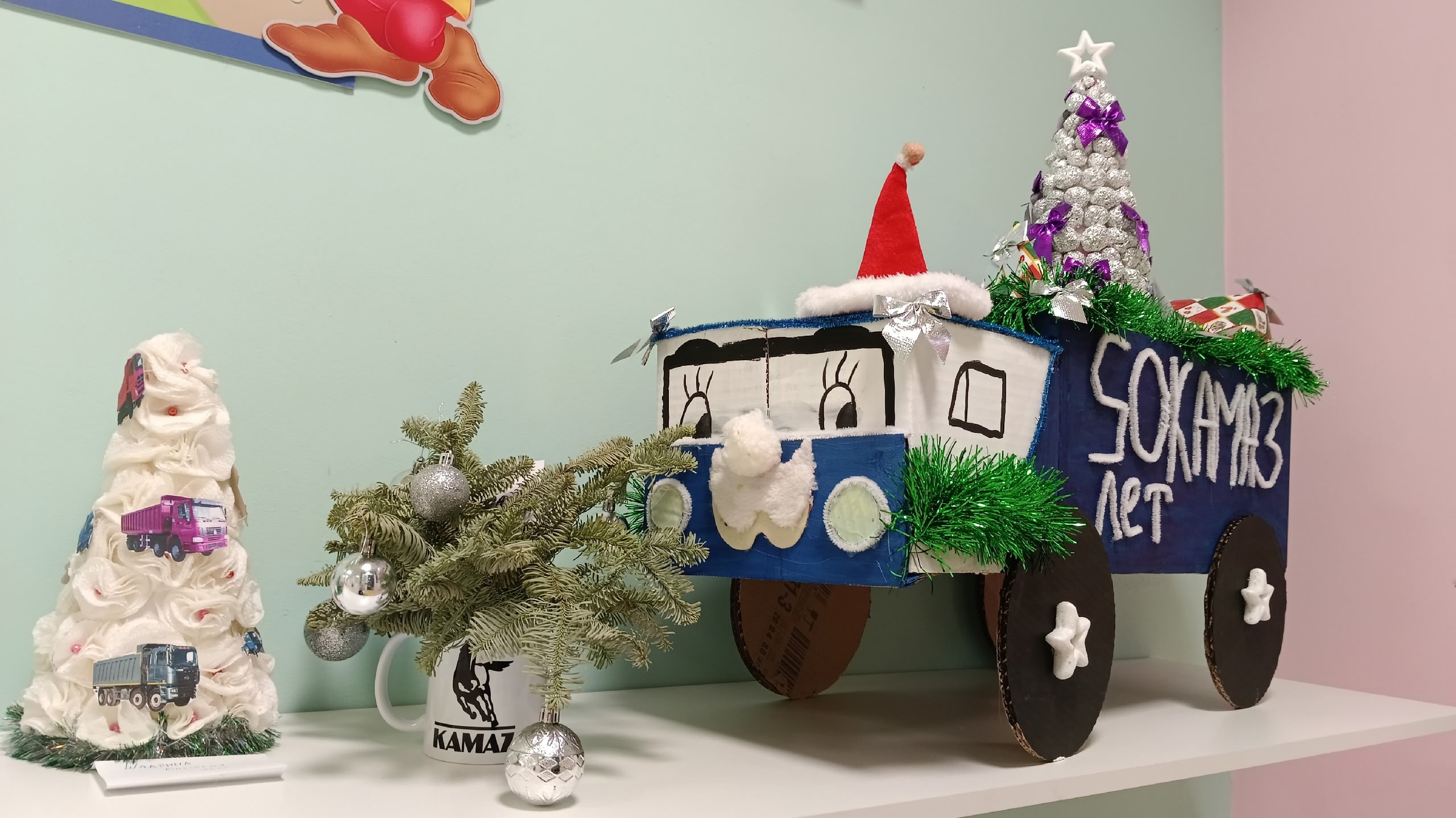 В преддверии новогодних праздников в детском саду №129 «Белоснежка», проходит конкурс поделок, посвященный сразу двум знаменательным датам: 400-летию города Набережные Челны и 50-летию со дня выпуска первого грузового автомобиля КАМАЗ.