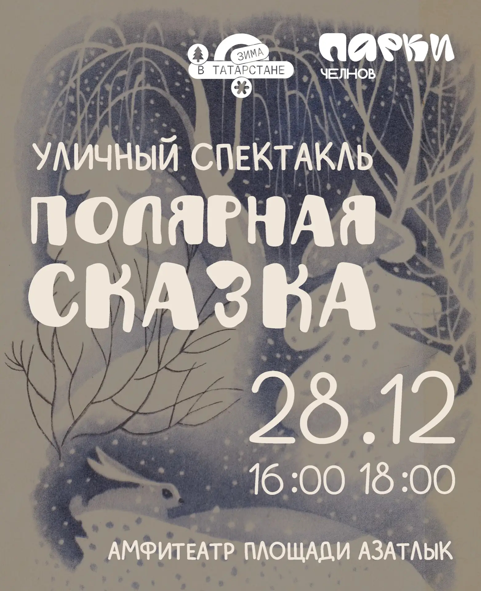 28 декабря главная площадь города станет местом притяжения праздничного настроения. В амфитеатре площади Азатлык покажут уличный спектакль для всей семьи «Полярная сказка».