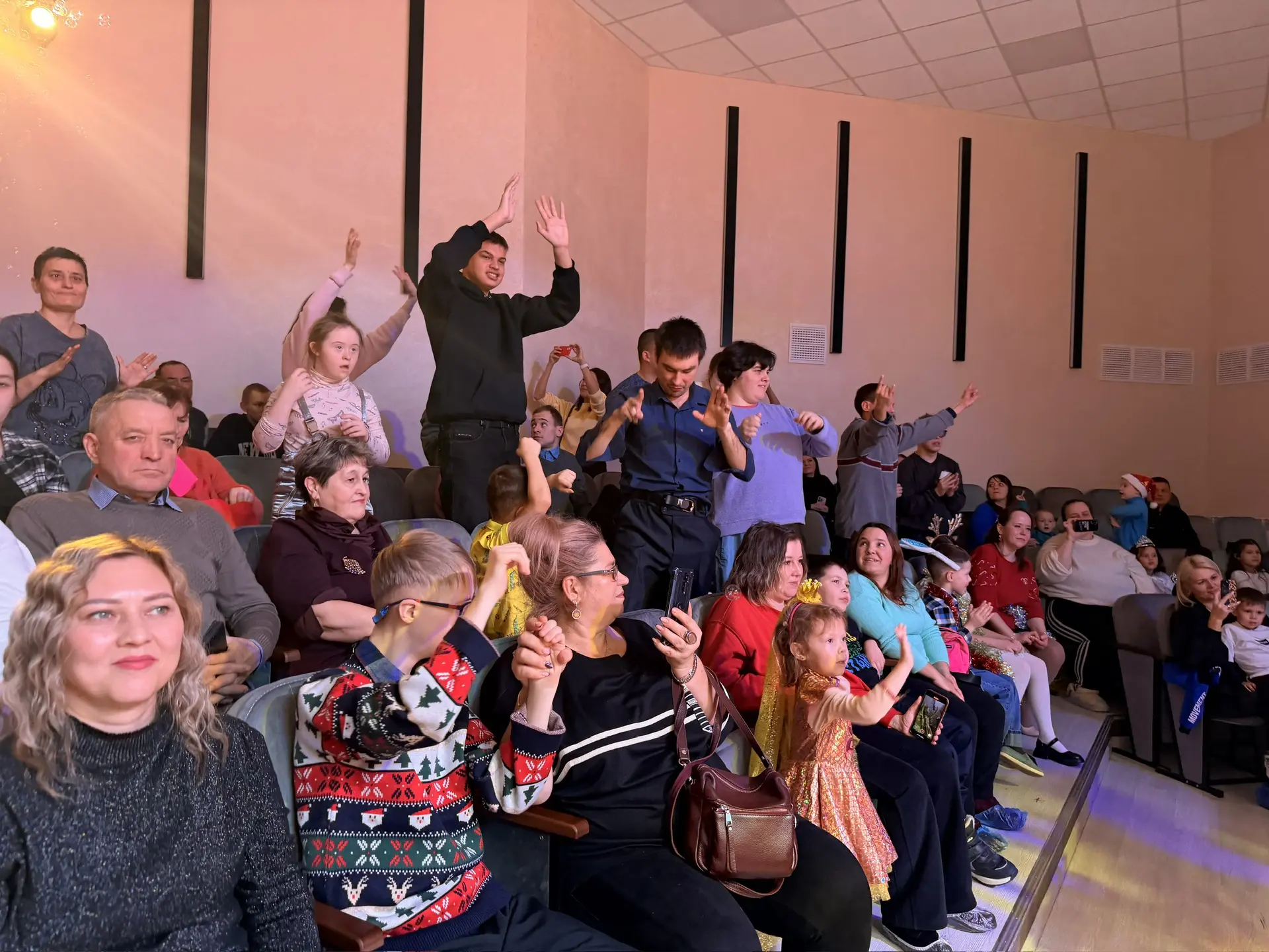 Особенно трогательным было участие самих подопечных — они не были простыми зрителями, а активно включались в театрализованное представление, создавая атмосферу истинного творчества и единства. Музыкальное сопровождение создавало веселое настроение, а участники с энтузиазмом двигались, танцевали и веселились. Это не только подняло настроение, но и способствовало развитию командного духа и социальной активности.