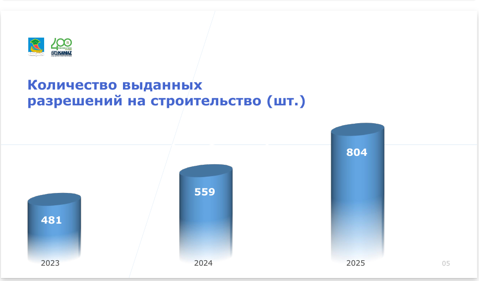 Сегодня в ходе аппаратного совещания с мэром Наилем Магдеевым заместитель руководителя Исполнительного комитета Мансур Фаттахов рассказал об итогах работы строительной отрасли в Набережных Челнах. По оценке 2025 года предварительный объем инвестиций в сфере строительство составил более 104,6 млрд рублей, что выше уровня 2024 года. Выдано 804 разрешения на строительство и 311 разрешений на ввод объектов в эксплуатацию.