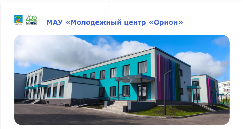 По республиканской программе капитального ремонта молодежных центров завершен ремонт молодежного центра «Орион», в рамках которого выполнено устройство фасада и отмостки, отделочные работы, заменены окна, двери, внутренние инженерные сети, установлены новое оборудование и мебель. Выполнено благоустройство территории, а также установлена сцена для проведения молодежных мероприятий.