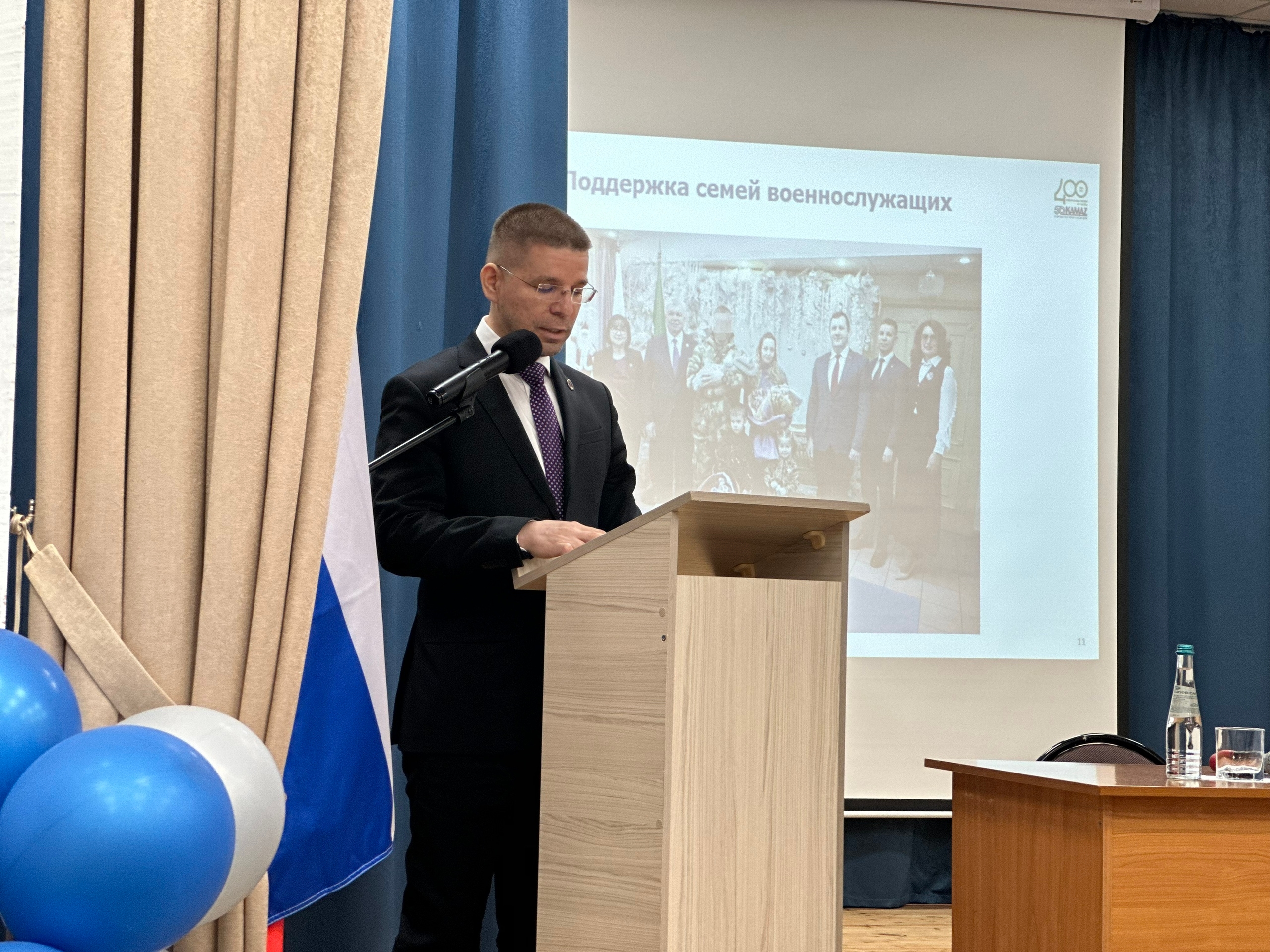 В это же время в школе №5 состоялась встреча с жителями Комсомольского района. Перед ними выступил глава администрации Комсомольского района Ленар Ахметзянов, который обозначил итоги деятельности района в прошедшем году и поблагодарил участников специальной военной операции за мужество и подвиг.